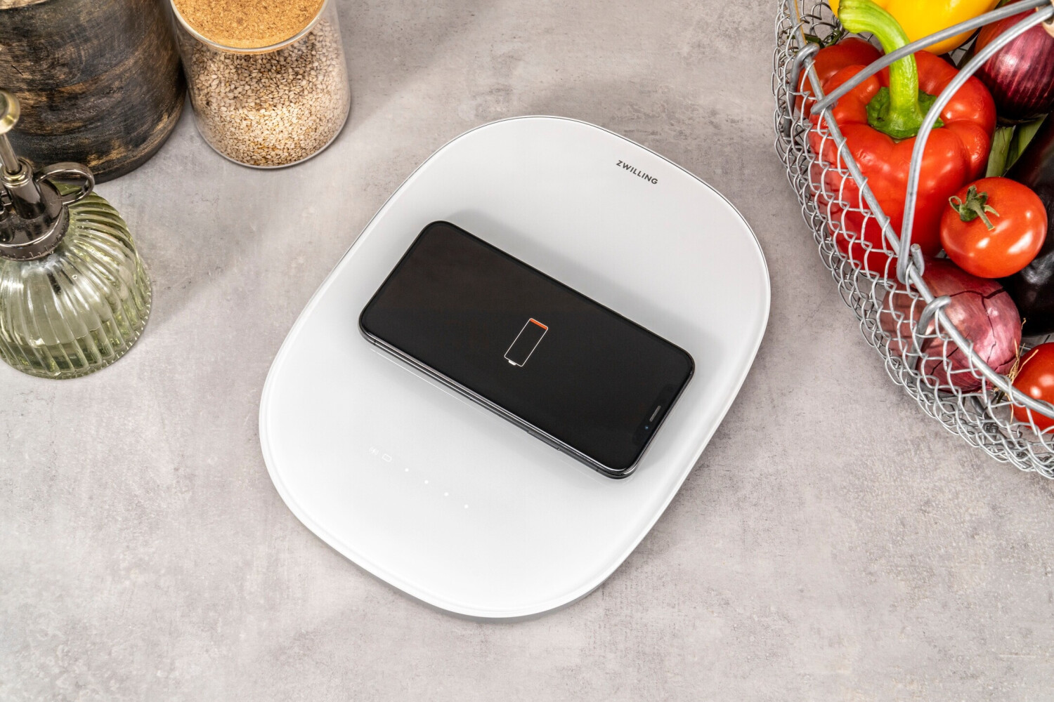 ZWILLING Enfinigy Digitale Küchenwaage mit induktiver Ladefunktion (53104-400-0) silber