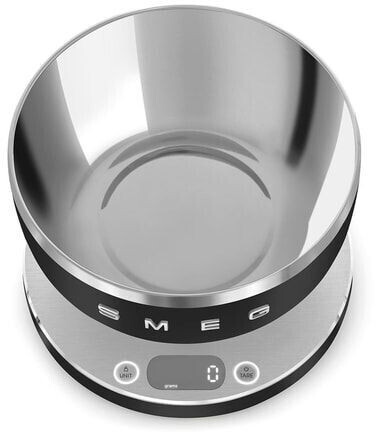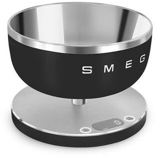 ترازوی دیجیتال اسمگ مدل KSC01، محصولی از برند ایتالیایی SMEG با طراحی کلاسیک دهه 50 میلادی و رنگ مشکی مات، جلوهای خاص به آشپزخانه میبخشد.