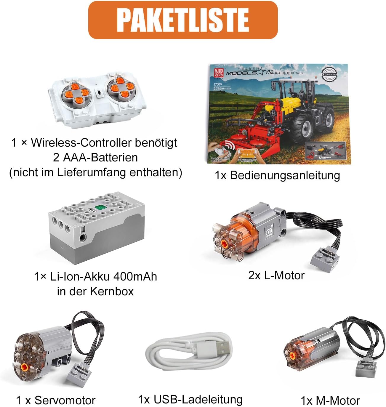 Mould King 17019 Technik Traktor, Ferngesteuert High-Tech Forklift mit 4 Motor, 4-in-1 Traktor Modell Groß Gabelstapler Klemmbausteine Bausatz | قیمت یورویی 125.99€