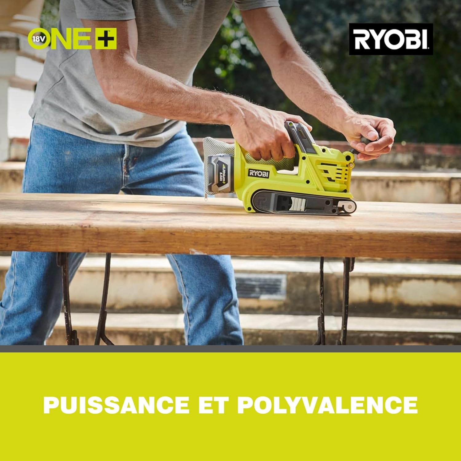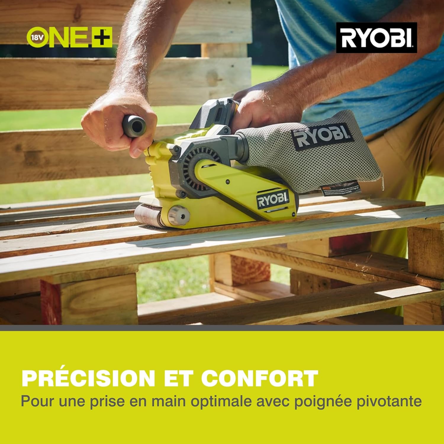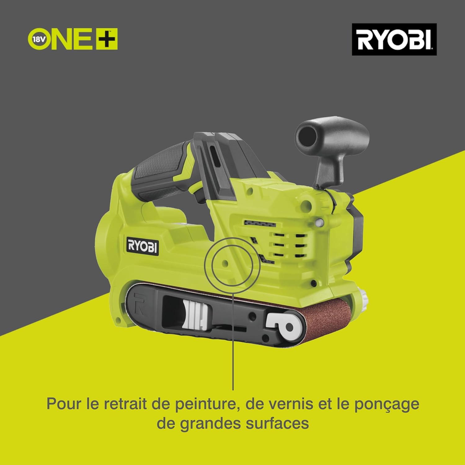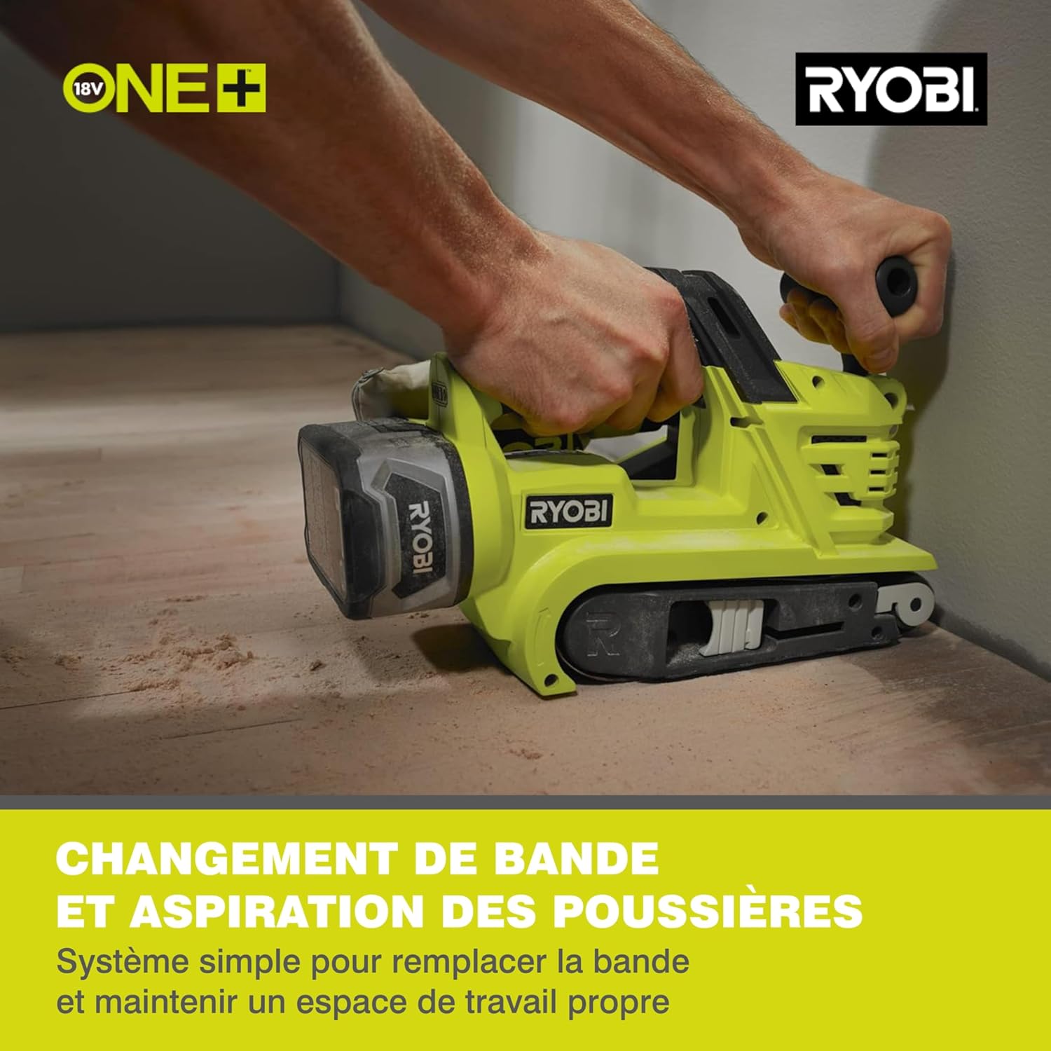 RYOBI 18 V ONE+ Akku-Bandschleifer R18BS-0 (76 mm Schleifbreite, 457mm Bandlänge, mit Staubfangsack, Bandgeschwindigkeit von 250 m|min, ohne Akku und Ladegerät), Grün | قیمت یورویی 135.65€