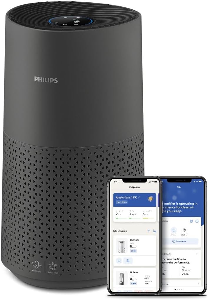 Philips Luftreiniger der Serie 1000i, Entfernt Keime, Staub und Allergene in Räumen bis zu 78 m², Schlafmodus, Grau und Schwarz (AC1715/11) | قیمت یورویی 197.99€
