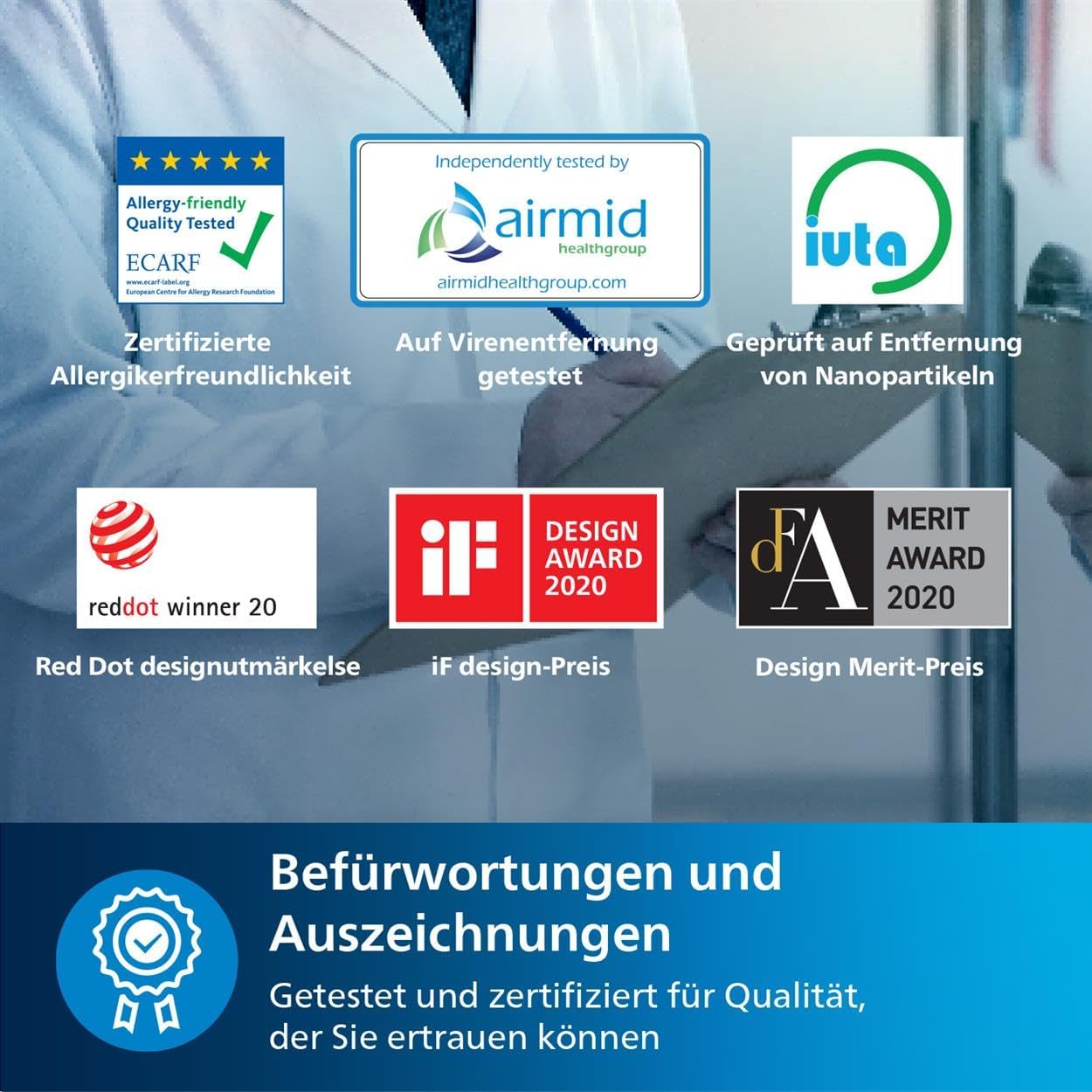 GROSSE ABDECKUNG VON BIS ZU 78 m²: Mit CADR 300 m³/h kann er 20 m2 in weniger als 10 Minuten reinigen (1). 3-SCHICHT-HEPA-FILTERUNG: Erfasst 99.97% % der Partikel bis zu 0.003 Mikrometer (2) - zum Schutz vor Pollen, Staub, Hausstaubmilben, Tierhaaren, Smog oder Gasen. Der Philips NanoProtect HEPA-Filter kann bis zu zweimal mehr Luft reinigen als herkömmliche (traditionelle) HEPA H13-Filter (3). ZERTIFIZIERT ALLERGIEFREUNDLICH von ECARF, der Luftreiniger entfernt 99.99 % der Pollen, Hausstaubmilben und Haustierallergene (7). LEISE UND EFFIZIENT: Im Schlafmodus arbeitet er mit nur 15 dB(4). Energieeffizient, er verbraucht bis zu 27 W zur Luftreinigung, weniger als eine herkömmliche Glühbirne. VERBINDUNG MIT AIR+ APP: damit Sie bei schlechter Lichtqualität eine Nachricht erhalten und die App aus der Ferne bedienen können - zu Hause oder unterwegs. SCANNEN UND VISUALISIEREN: Der professionelle Partikelsensor scannt nach Schadstoffen und wählt intelligent die richtige Geschwindigkeit. Er zeigt die Luftqualität in Echtzeit (auf dem Produktdisplay und in der Air+ App). SORGFÄLTIG AUF QUALITÄT GETESTET: Philips verfügt über mehr als 80 Jahre Erfahrung in der Luftreinigung. Unsere Luftreiniger werden vor der Freigabe 170 strengen Tests unterzogen, um höchste Qualität zu gewährleisten. LANGLEBIGER FILTER MIT SMART CHANGE-ANZEIGE: Der Filter hält bis zu 1 Jahr (5), sodass Sie im Vergleich zu anderen Luftreinigern langfristig Geld sparen können. Wir empfehlen die Verwendung der Original Philips Ersatzfilter, um die beste Leistung Ihres Luftreinigers zu erzielen - kompatibel mit FY1700. | قیمت یورویی : 197.99€