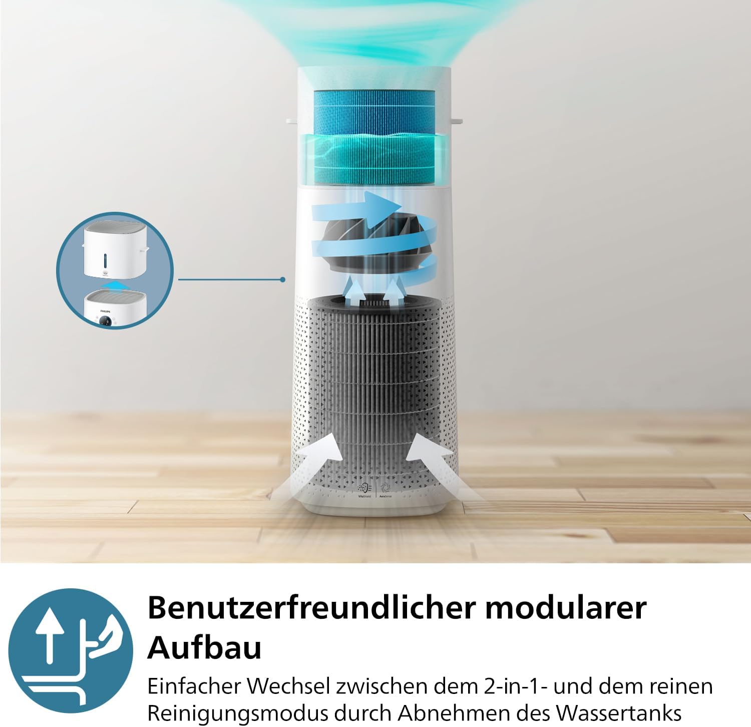 Beseitigt 99,97% der Schadstoffe mit der NanoProtect HEPA-Technologie(4). Mit einer CADR von 505 m3/h(5) reinigt er selbst große Räume mit bis zu 131 m2(1) und bietet Schutz vor Pollen, Staub, Viren, Bakterien, Tierhaaren, Hausstaubmilben, Schimmelsporen, Gasen, Formaldehyd, Gerüchen und Allergenen Hygienische und hocheffiziente Befeuchtung für optimale Luftfeuchtigkeit (650 ml/h) mit 4 verschiedenen Einstellungen, die es ermöglichen, die Luftfeuchtigkeit auf das von Ihnen gewünschte Niveau einzustellen Intelligente Sensorik und vollständige Vernetzung für Ihren Komfort. Intelligente AeraSense-Sensoren scannen die Luft und geben Echtzeit-Feedback über die Luftqualität im Raum, die Sie mit der Air+ App verfolgen und steuern können Der abnehmbare 4-Liter-Wassertank ermöglicht ein einfaches Umschalten vom 2-in-1-Modus in den reinen Reinigungsmodus und bietet so eine noch höhere Reinigungsleistung Zertifiziert als "Infantcare-grade" und allergikerfreundlich. Empfohlen für empfindliche Gruppen wie Schwangere/Neugeborene/Kinder/Allergiker, die höhere Anforderungen an die Luftqualität haben Leise und effizient: Im Ruhemodus ist er mit nur 15 dB(7) leiser als ein Flüstern. Energieeffizient, verbraucht 42W zur Luftreinigung, 1,7-mal energieeffizienter als der Branchendurchschnitt(8) | قیمت یورویی : 352.99€