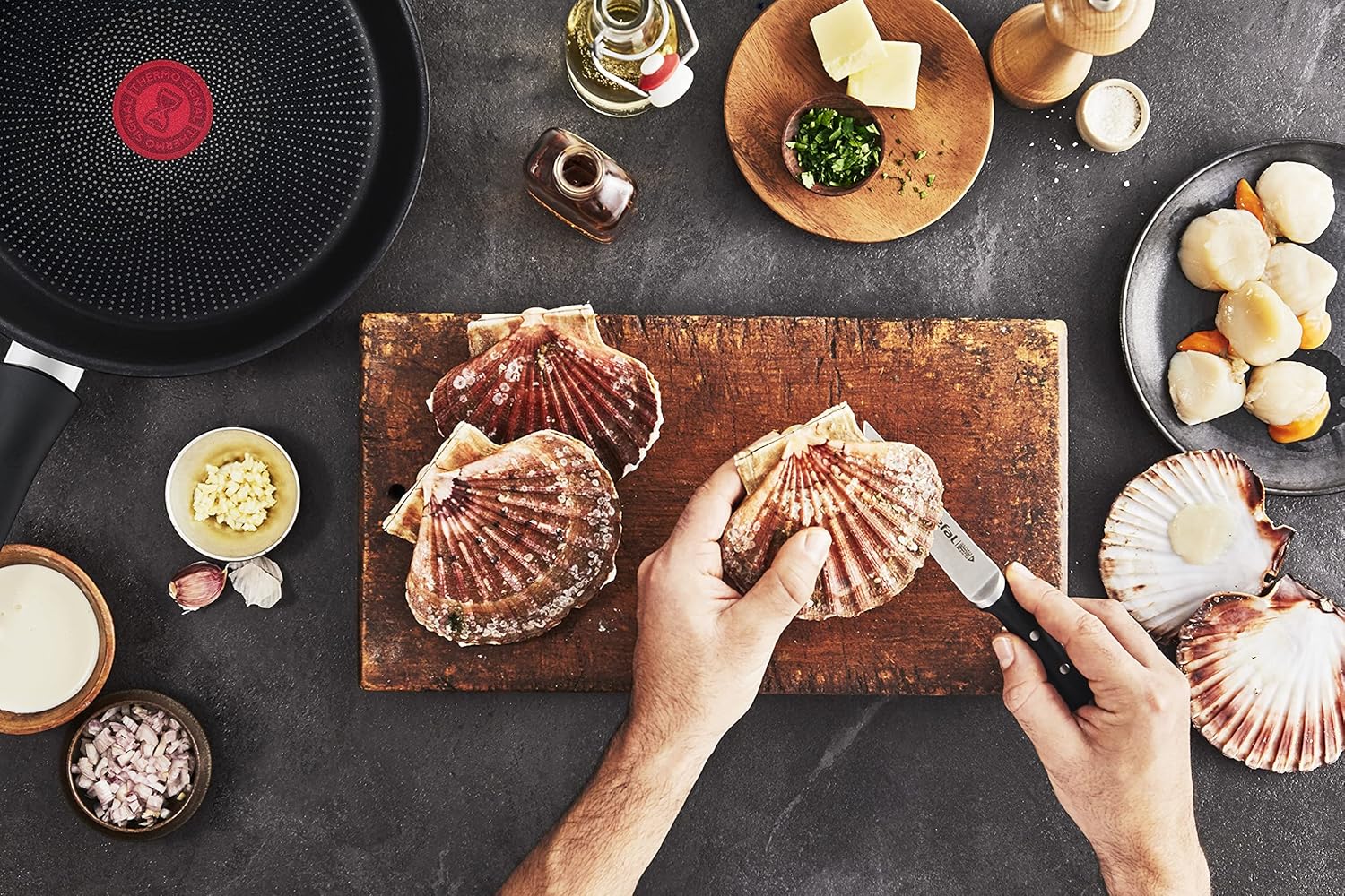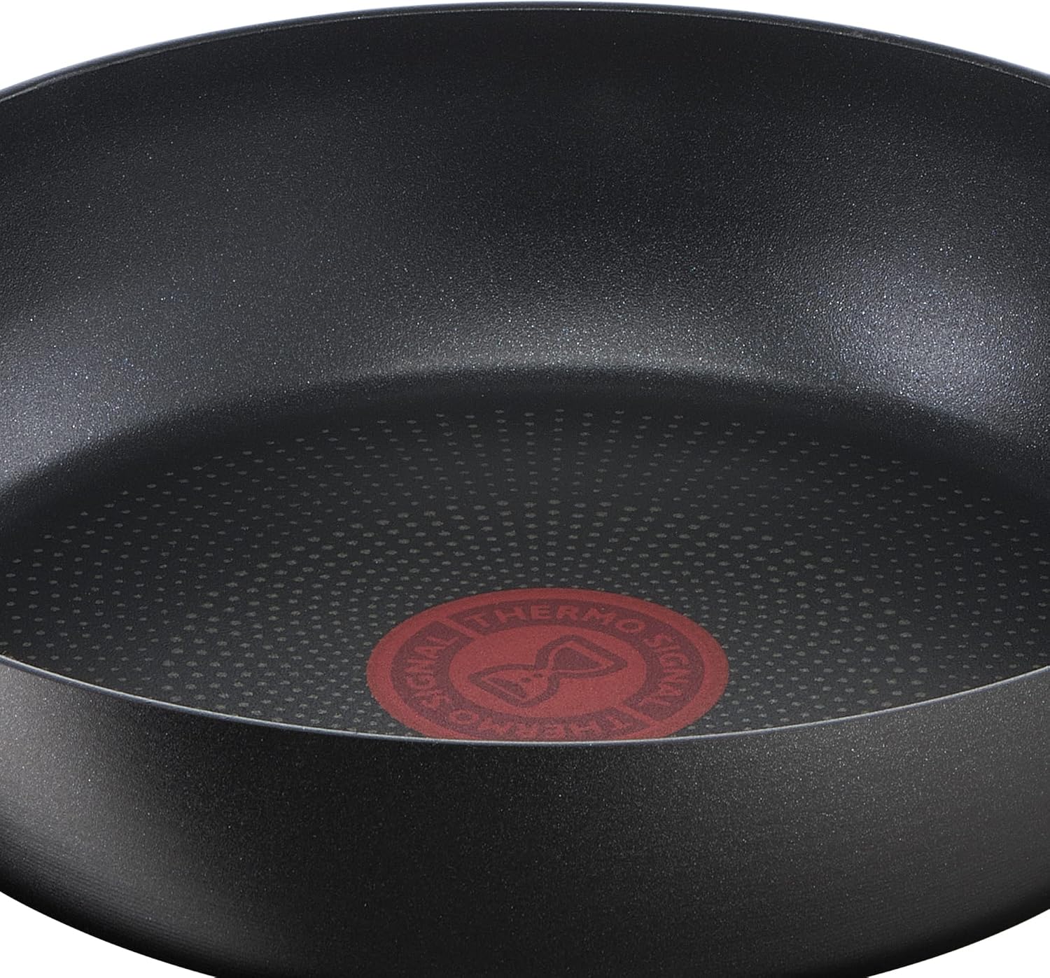 Hochresistente Beschichtung: Eine Antihaftversiegelung mit Titanpartikel-Verstärkung, die bis zu 3 mal länger hält als eine Tefal Standard-Titanbeschichtung Startanzeige Garvorgang: Antihaftbeschichtete Pfanne mit Thermo-Signal, das sich farblich verändert, wenn die optimale Starttemperatur zum Braten erreicht ist Thermo-Fusion+: Durch die extragroße Fläche und den starken Boden ermöglicht Thermo-Fusion+ ein schnelles Erwärmen und eine homogene Wärmeverteilung in der Pfanne Ideal für zahlreiche Rezepte: Zum Anbraten von Fleisch, Garen von zartem Lachs, von Gemüse usw. Vielseitig und für alle Herdarten geeignet, einschließlich Induktion (Gas, Elektro, Keramik, Induktion) | قیمت یورویی : 46.25€