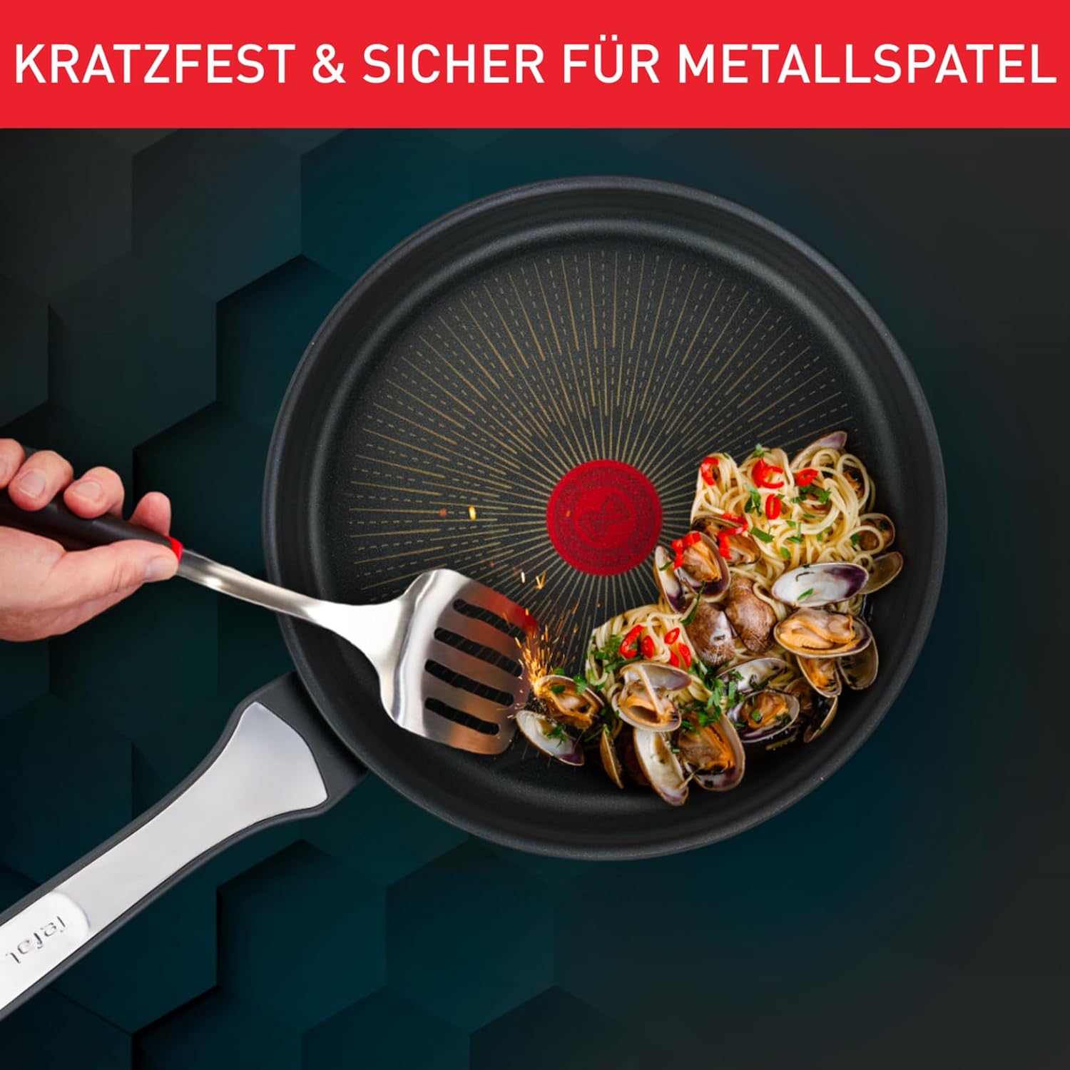 DIE BESTE KRATZFESTE ANTIHAFTVERSIEGELUNG*: Besonders widerstandsfähige Antihaftversiegelung, die keinen Bratwender fürchtet und 6 Mal länger hält als die Tefal Standard-Antihaftversiegelung 100% SICHERE ANTIHAFTVERSIEGELUNG: 0 % PFOA, 0 % Blei, 0 % Cadmium** THERMO-SIGNAL: Das THERMO-SIGNAL wechselt die Farbe, sobald die Pfanne optimal vorgewärmt und bratbereit ist. SCHNELLES UND GLEICHMÄSSIGES BRATEN: Dank Premium Induktionstechnologie UMWELTFREUNDLICHE VERPACKUNG: Recycelter und recycelbarer Karton ohne Styropor und Plastikbeutel PERFEKT FÜR ZAHLREICHE REZEPTE: Zum Anbraten von Steak, Garen von zartem Lachs, Sautieren von Gemüse und vielem mehr GROSSE PORTIONEN: Eine Pfanne mit extra tiefer Form | قیمت یورویی : 42.9€