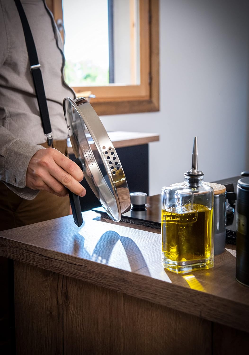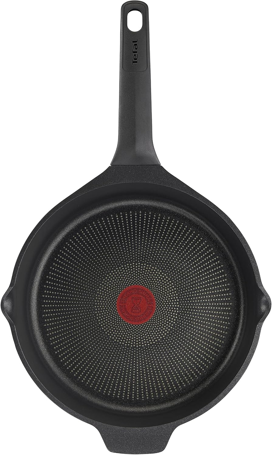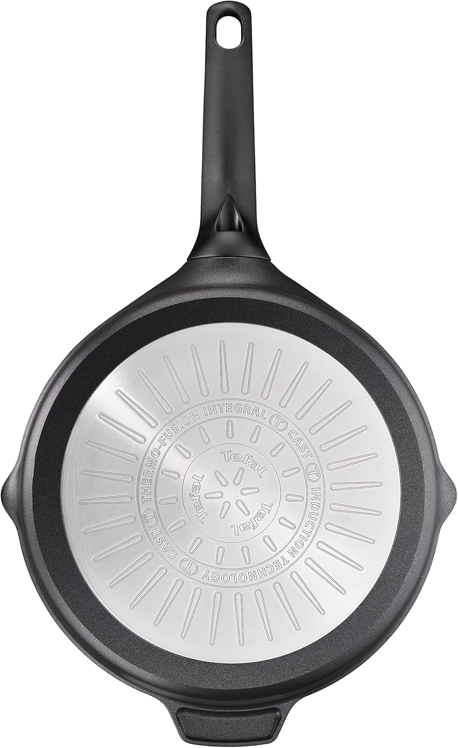 Langlebige 3X Antihaftversiegelung: Eine langlebige und unbedenkliche Antihaftversiegelung, die drei Mal länger hält (im Vergleich zur Standard-Antihaftversiegelung von Tefal); sowie frei von PFOA, Blei und Kadmium (mit strengeren Kontrollen als es die geltenden Vorschriften für den Lebensmittelkontakt verlangen) Temperaturindikator Thermo-Signal: Die innovative Thermo-Signal-Zone färbt sich einheitlich dunkelrot, sobald die Pfanne optimal vorgewärmt und bratbereit ist - für perfekte Kochergebnisse jedes Mal Komfortables Kochen: Der äußerst stabile Griff ist vollständig in den Robusto-Körper integriert und der praktische Gegengriff sorgt für mehr Komfort und Sicherheit beim Kochen; der clevere aufstellbare Deckel schafft zudem Platz auf der Arbeitsfläche und lässt Speisen leicht abgießen Praktisch und einfach zu Reinigen: Die Ausgießhilfen ermöglichen ein sauberes und präzises Servieren, damit Ihre Küche stets makellos bleibt; außerdem ist die Pfanne spülmaschinenfest, für eine besonders leichte Reinigung (wir empfehlen für eine längere Lebensdauer jedoch die Reinigung per Hand) Professionelle Induktionstechnologie: Dank des extrastarken, stoßfesten Thermo-Fusion Integral Bodens können Sie sich jeden Tag auf eine perfekte Wärmeverteilung und gleichmäßig gegarte Speisen verlassen - zudem ist er für alle Herdarten inklusive Induktion geeignet (Gas, Elektro, Glaskeramik, Induktion) | قیمت یورویی : 95.99€