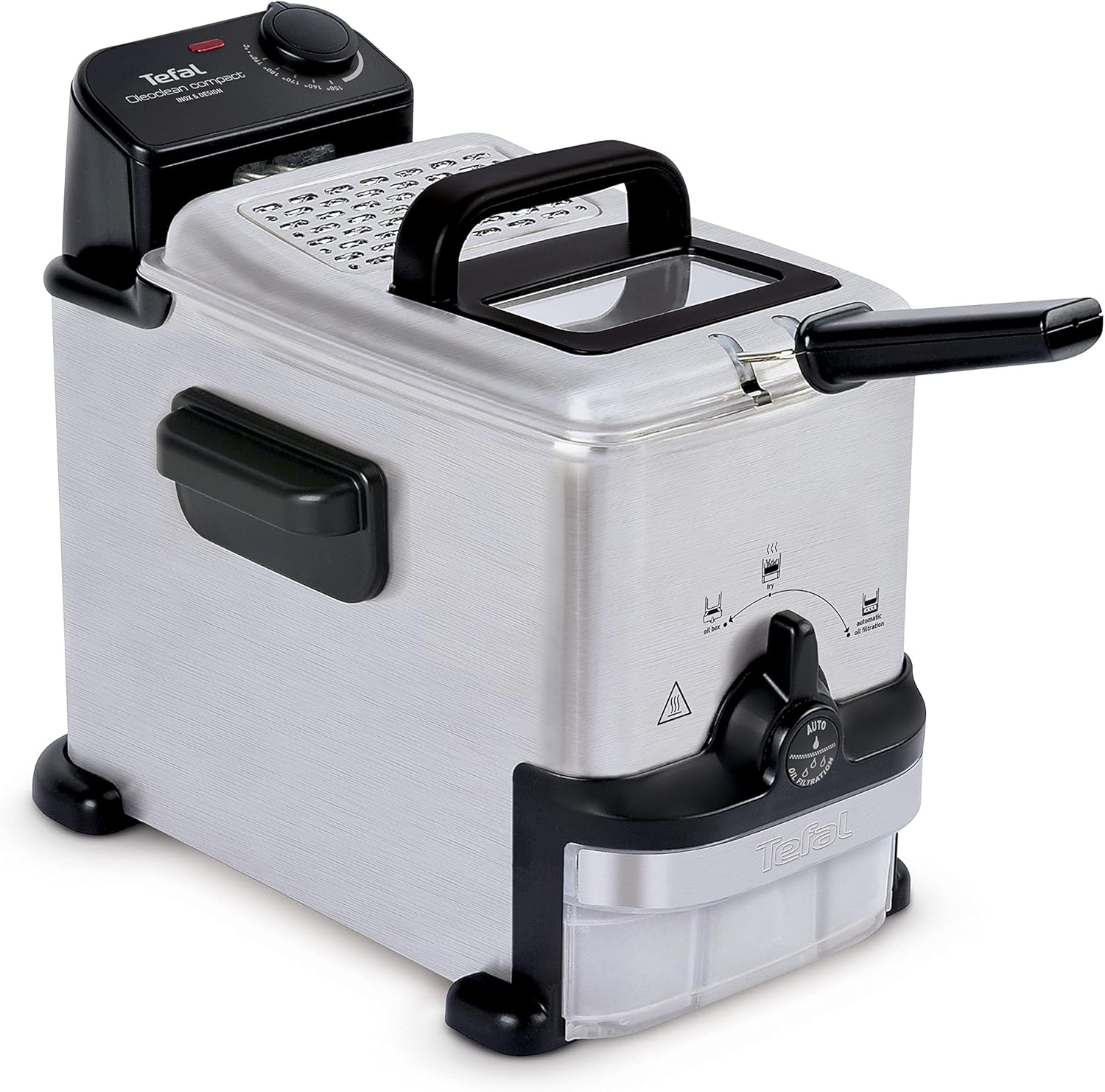 تفال FR7016 Oleoclean Compact Electric Deep Fryer | ظرفیت روغن 2 لیتر | فیلتراسیون روغن اتوماتیک | قطعات قابل شستشو در ماشین ظرفشویی | پنجره مشاهده | دمای قابل تنظیم | مشکی/استنلس استیل 2 لیتری | 800 گرم