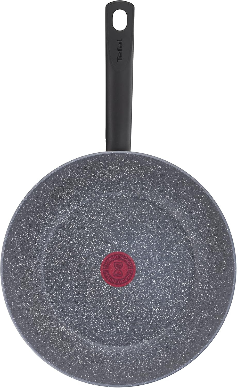 Tefal G28019 Natural On Wokpfanne 28 cm | Mineralia+ Antihaftversiegelung | Thermo-Signal für alle Herdarten geeignet Induktion | Thermo-Fusion | Mineralia Stein-Effekt, Grau | قیمت یورویی 71.91€
