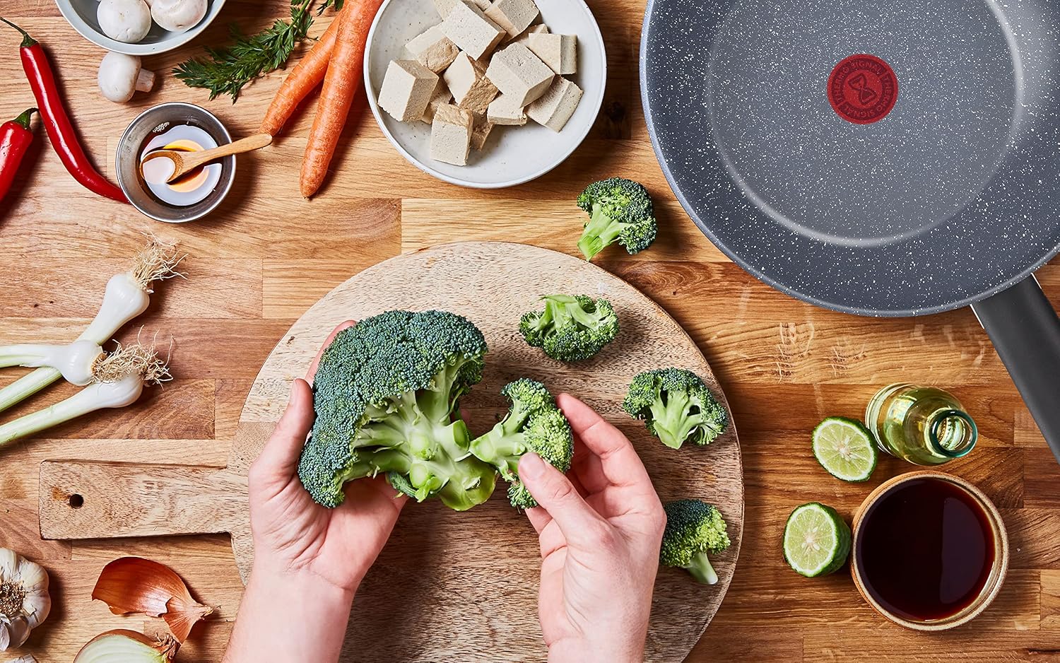 تفال G28019 Natural On wok تابه 28 سانتی متر | پوشش نچسب Mineralia+ | ترمو سیگنال مناسب برای انواع اجاق گاز القایی | ترمو فیوژن | اثر سنگ معدنی، خاکستری