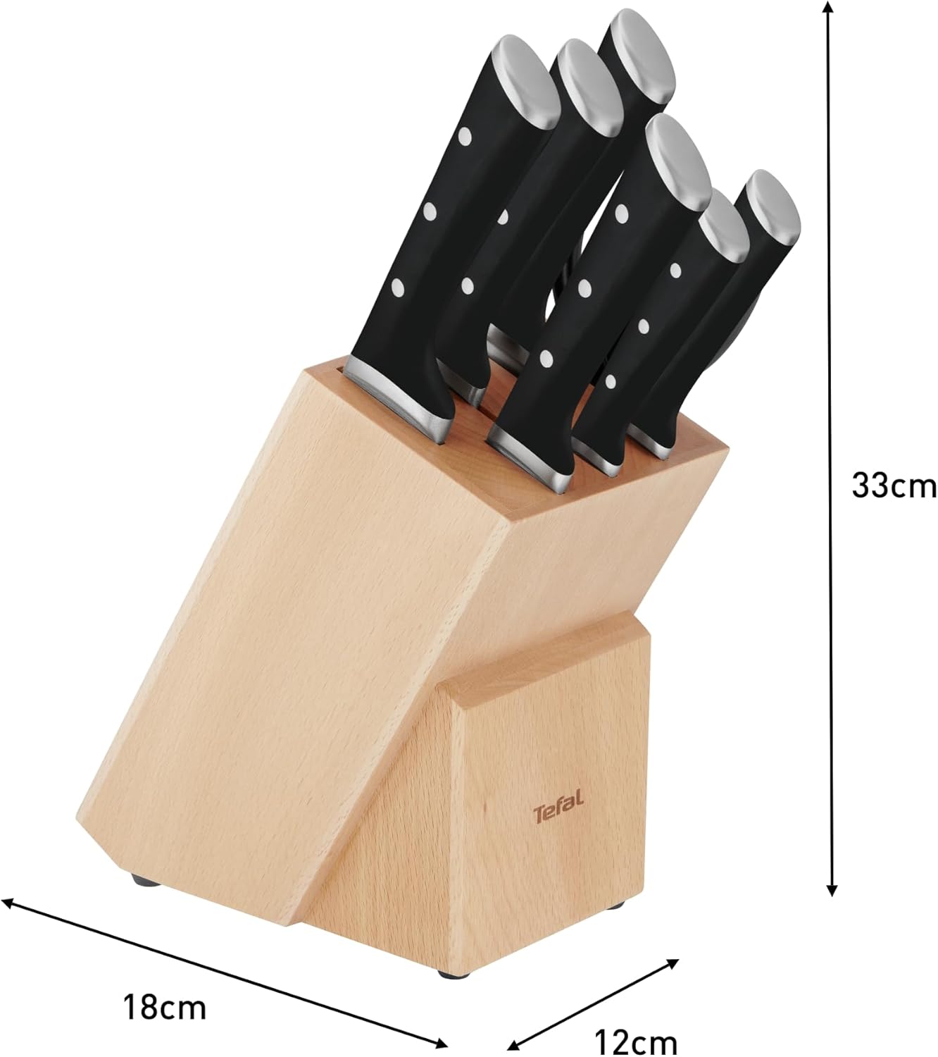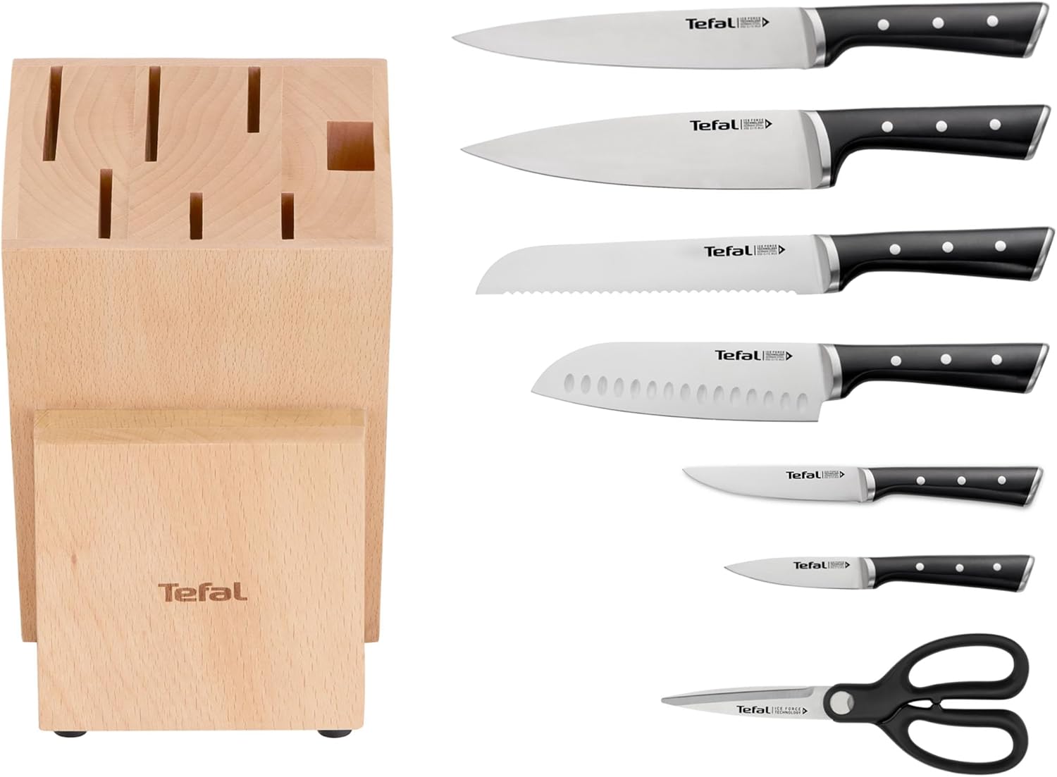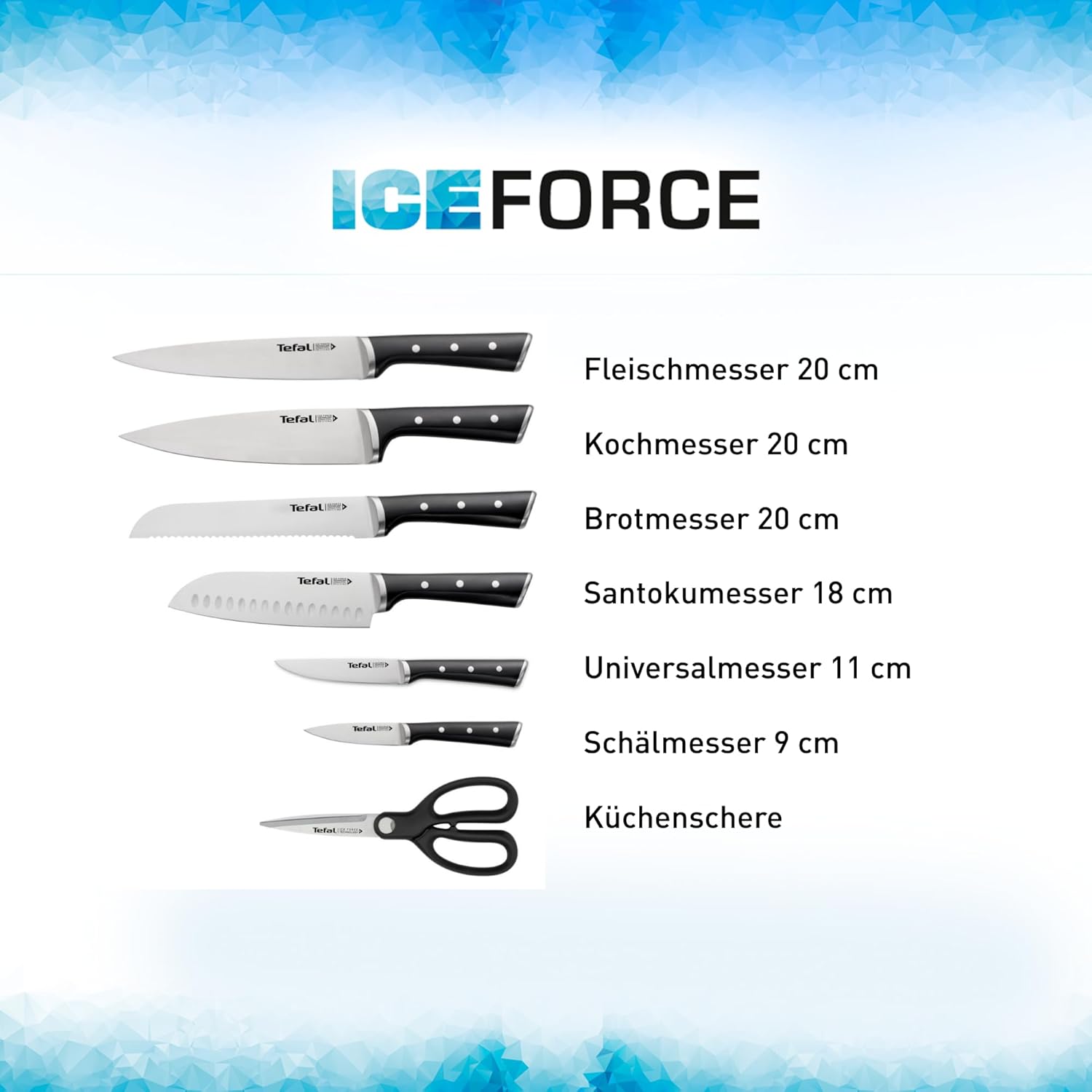 Tefal K232S7 Ice Force 8-tlg. Messerblock-Set, 6 Messer, 1 Schere, 1 Holz-Messerblock, hochwertiger deutscher Edelstahl, Ice Force Technologie, korrosionsbeständig, schwarz, braun, silber 7 pièces Küchenmesser | قیمت یورویی 104.81€