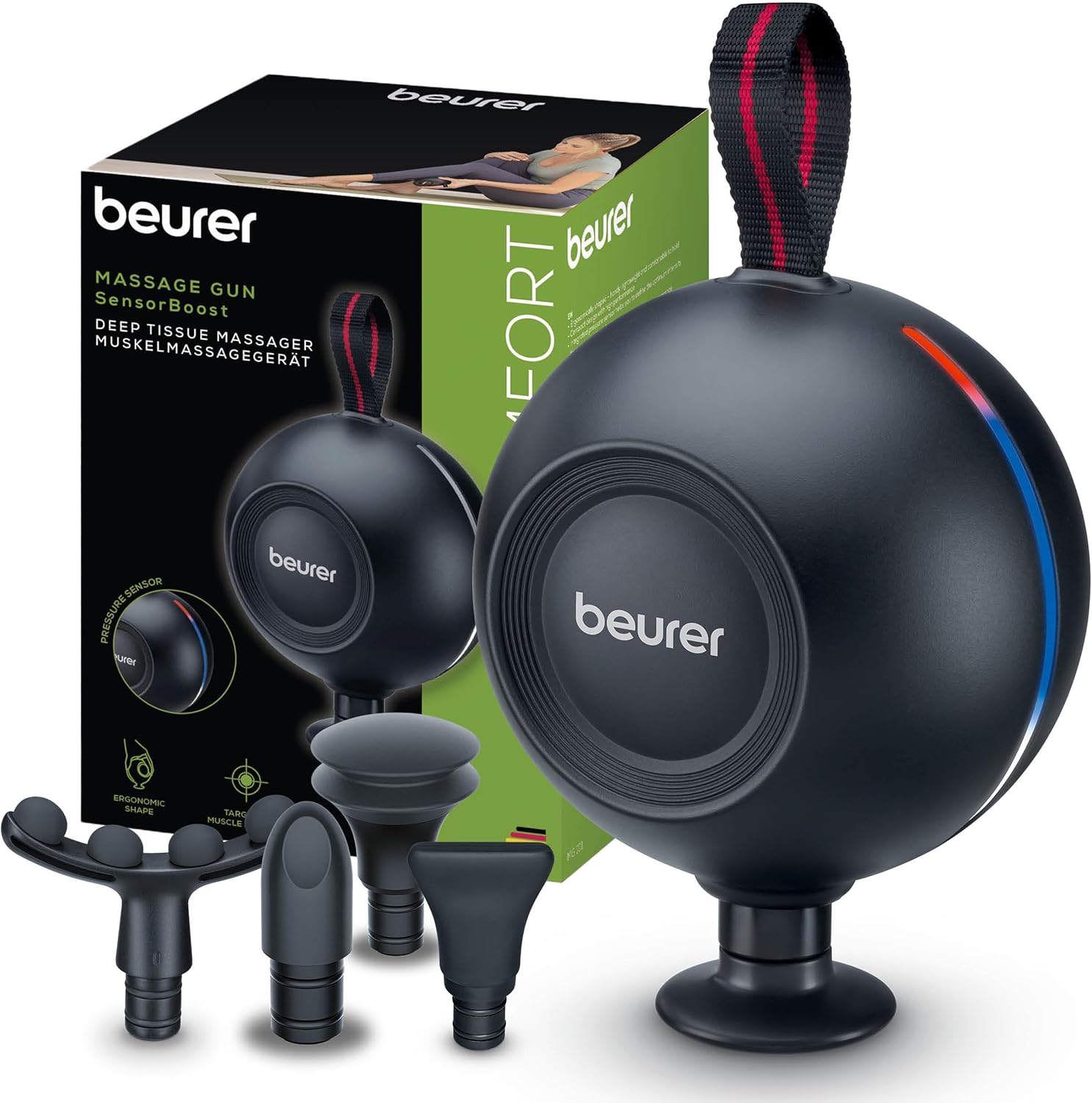 Beurer MG 101 SensorBoost Massagepistole, ergonomisches & kompaktes Design, leise & kraftvolle Triggerpunktmassage für Entspannung & Regeneration, Muskelmassagegerät mit Drucksensor, 5 Aufsätze Die Ergonomische | قیمت یورویی 63.99€