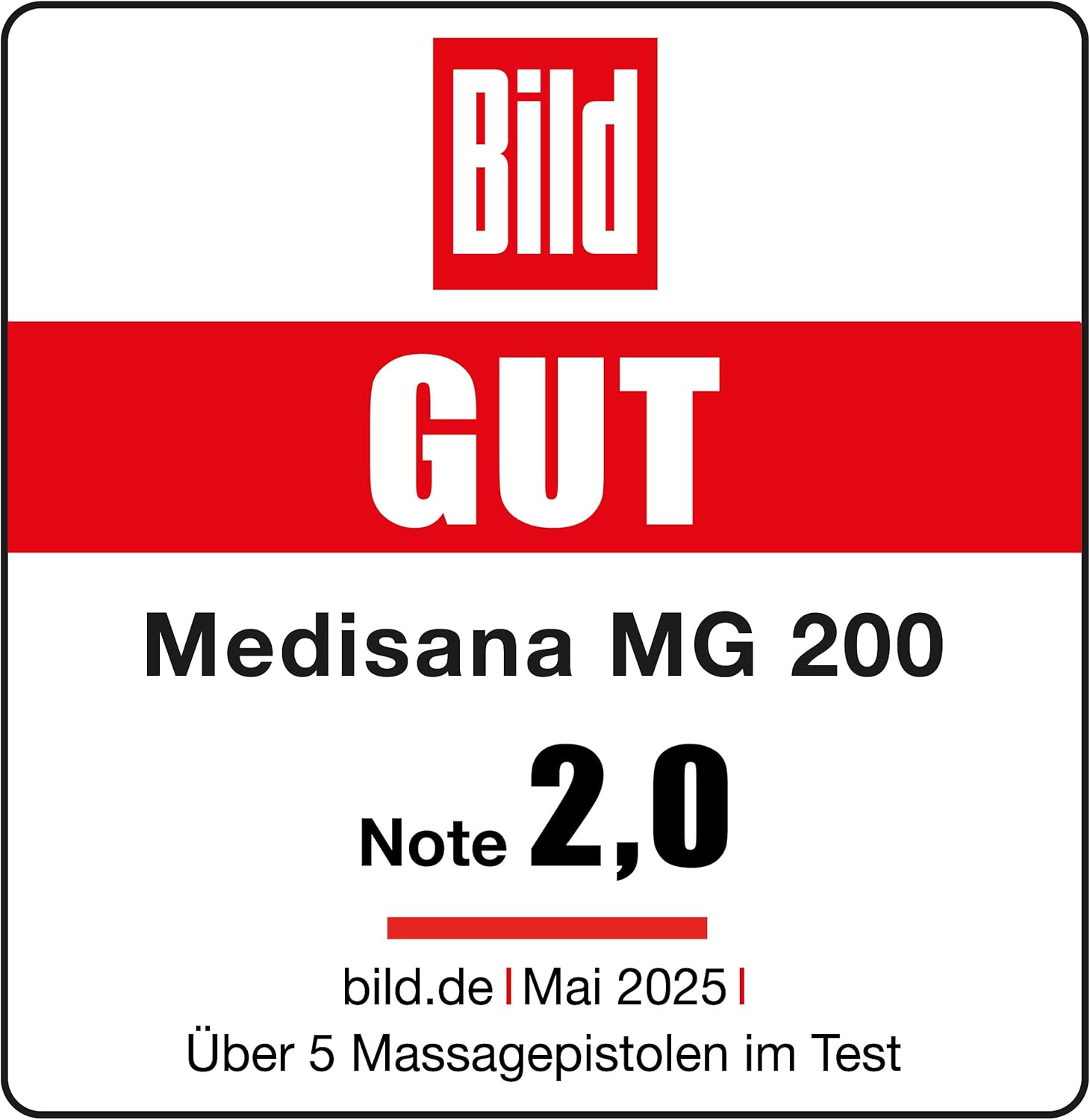 تفنگ ماساژ کوچک مدیسانا MG 200، تفنگ ماساژ با 4 ضمیمه، ماساژور با حالت هوشمند و 5 سطح شدت برای آرامش و ماساژ، عمر باتری طولانی، با جعبه نگهداری