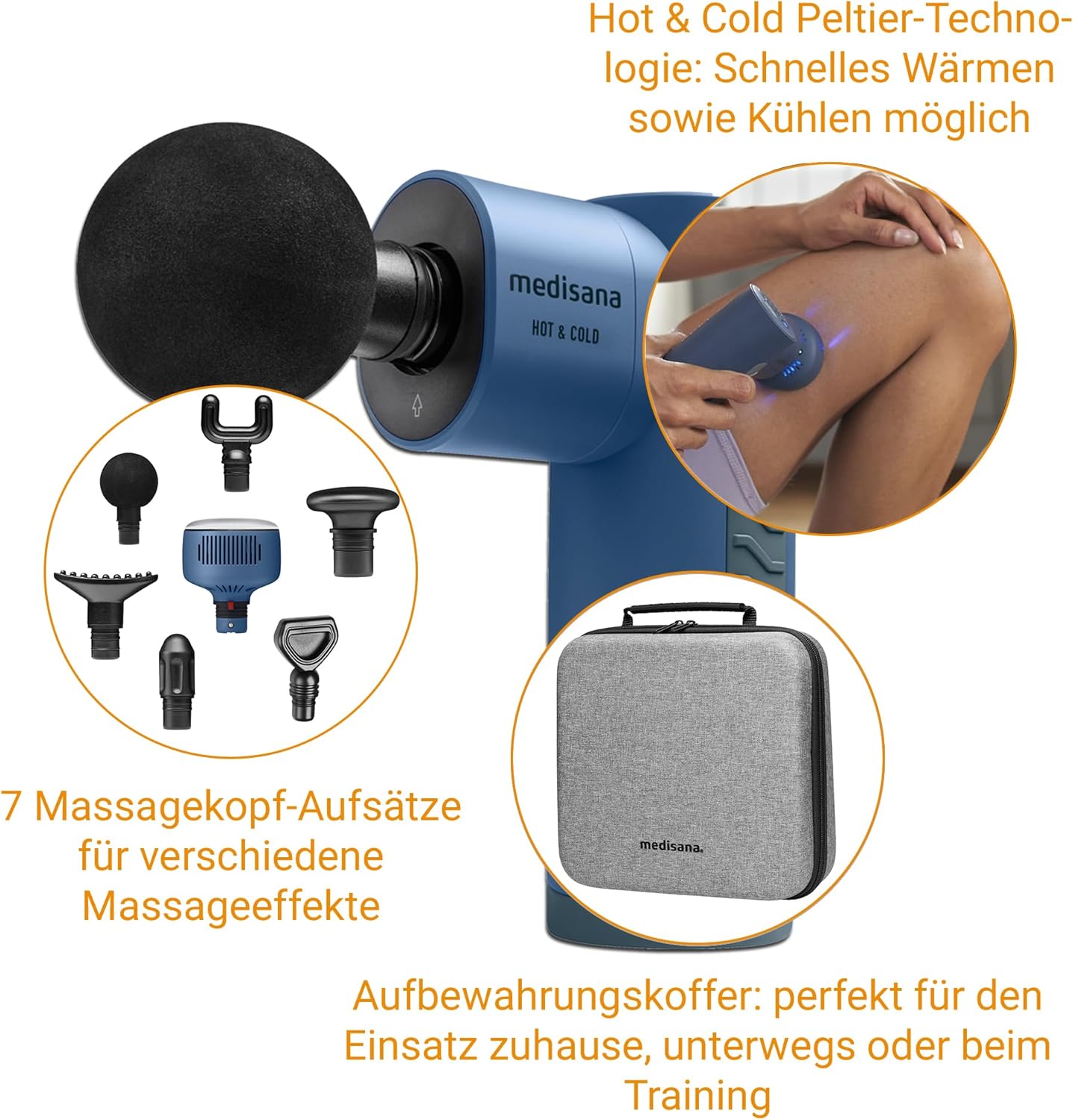 Medisana MG 600 Massagepistole, Elektrisches Massagegerät, Massage Gun zur Muskelentspannung und Lymphdrainage, Wärme und Kälte Funktion, Inkl. 7 Massageaufsätze & 3 Vibrationsstufen Hot & Cold Funktion | قیمت یورویی 89.96€