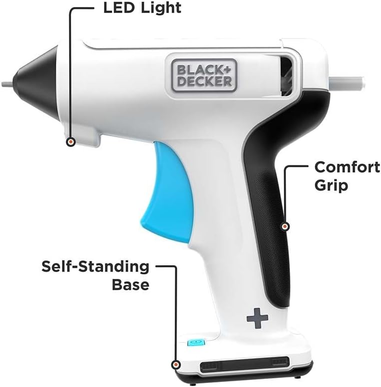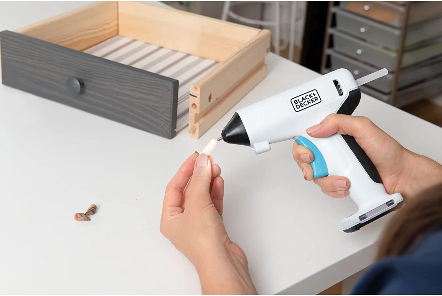 Black+Decker 3.6V Akku-Heißklebepistole BCGL115 (kabellos, für Bastel-, Deko- & Reparaturarbeiten, selbststehend, automatische Abschaltung, mit integriertem LED-Licht, inkl. USB-C Kabel & Klebestifte) | قیمت یورویی 22.3€