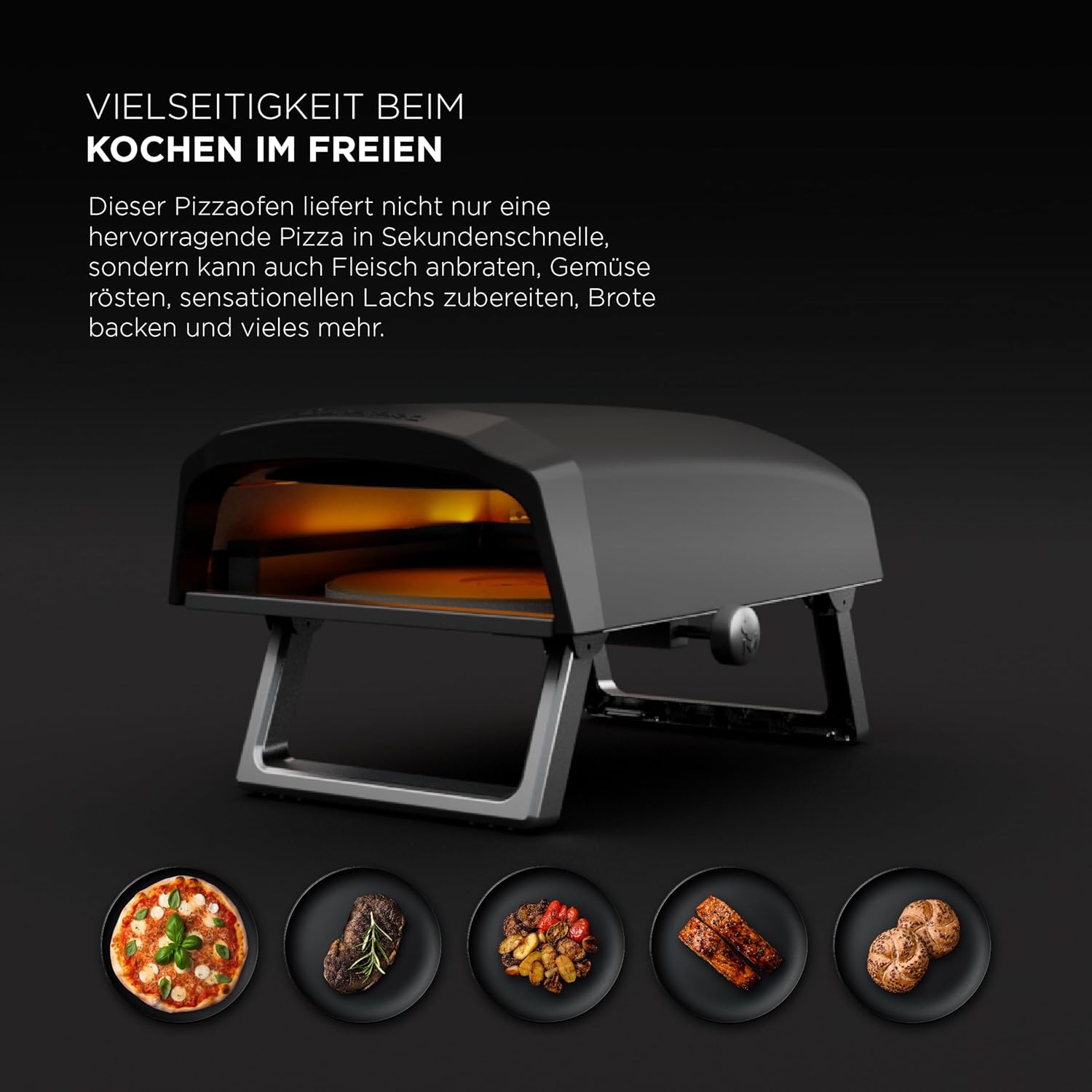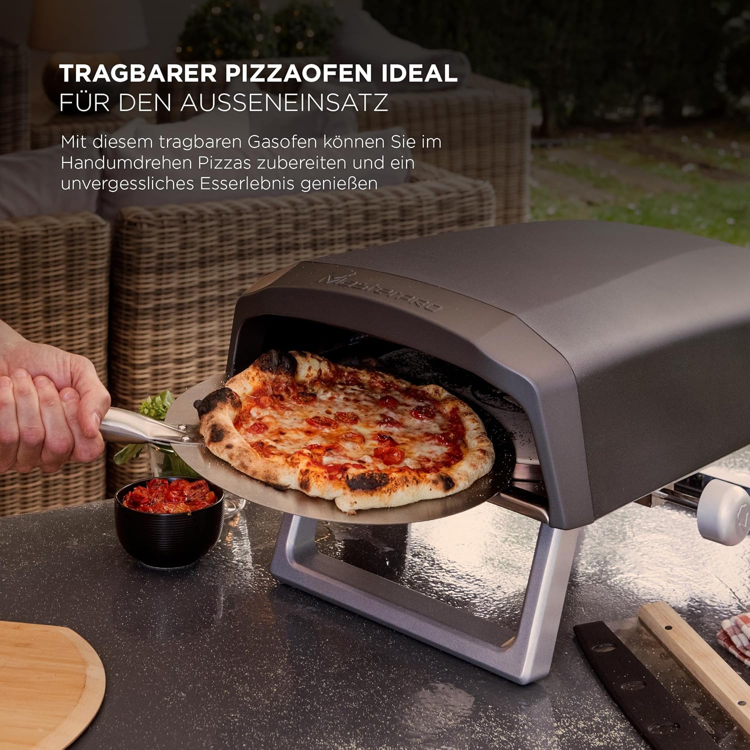 MasterPRO Napoli - Tragbarer Gas-Drehpizzaofen - Schnelles, gleichmäßiges Garen - Leistung bis zu 500°C - Pizzen in 60 Sekunden fertig - Tragetasche und Steintablett im Lieferumfang enthalten