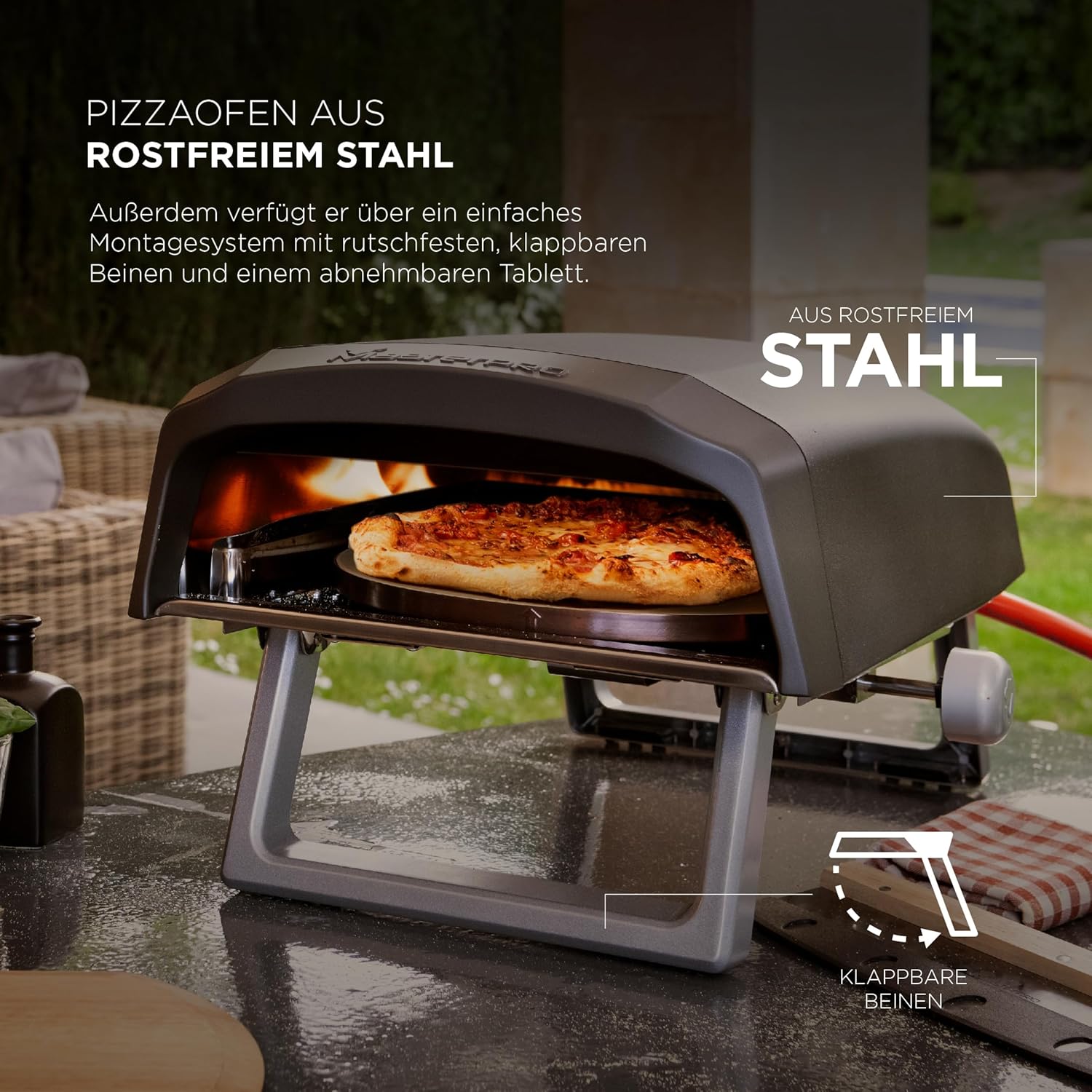KOCHEN SIE IHRE PIZZA IN REKORDZEIT: Mit unserem Napoli-Ofen für den Außenbereich können Sie Rezepte im Handumdrehen zubereiten. Er erreicht eine maximale Temperatur von 500º in 20 Minuten und Sie brauchen nur 60 Sekunden, um Ihre Lieblingspizza zuzubereiten. GLEICHMÄSSIGE LEISTUNG: Genießen Sie mit dem MasterPRO Napoli Ofen ein perfekt gleichmäßiges Backergebnis auf jeder Pizza. Sein innovativer Drehteller sorgt dafür, dass Ihre Pizza jedes Mal gleichmäßig erhitzt wird. So erhalten Sie bei jedem Bissen einen knusprigen Boden und einen perfekt gegarten Belag. TRANSPORTIERBAR UND IDEAL FÜR DEN AUSSENGEBRAUCH: Wenn Sie auf einem Ausflug oder an einem anderen Ort Lust auf Pizza haben, können Sie sie mit diesem tragbaren Gasofen im Handumdrehen zubereiten und ein unvergessliches Esserlebnis genießen. INNOVATIVES UND FUNKTIONELLES DESIGN: Unser Napoli-Backofen ist aus rostfreiem Stahl gefertigt und verfügt über ein einfaches Montagesystem, einschließlich rutschfester, klappbarer Beine und einer abnehmbaren Schale, wodurch er leicht zu reinigen und zu transportieren ist. | قیمت یورویی : 182.5€