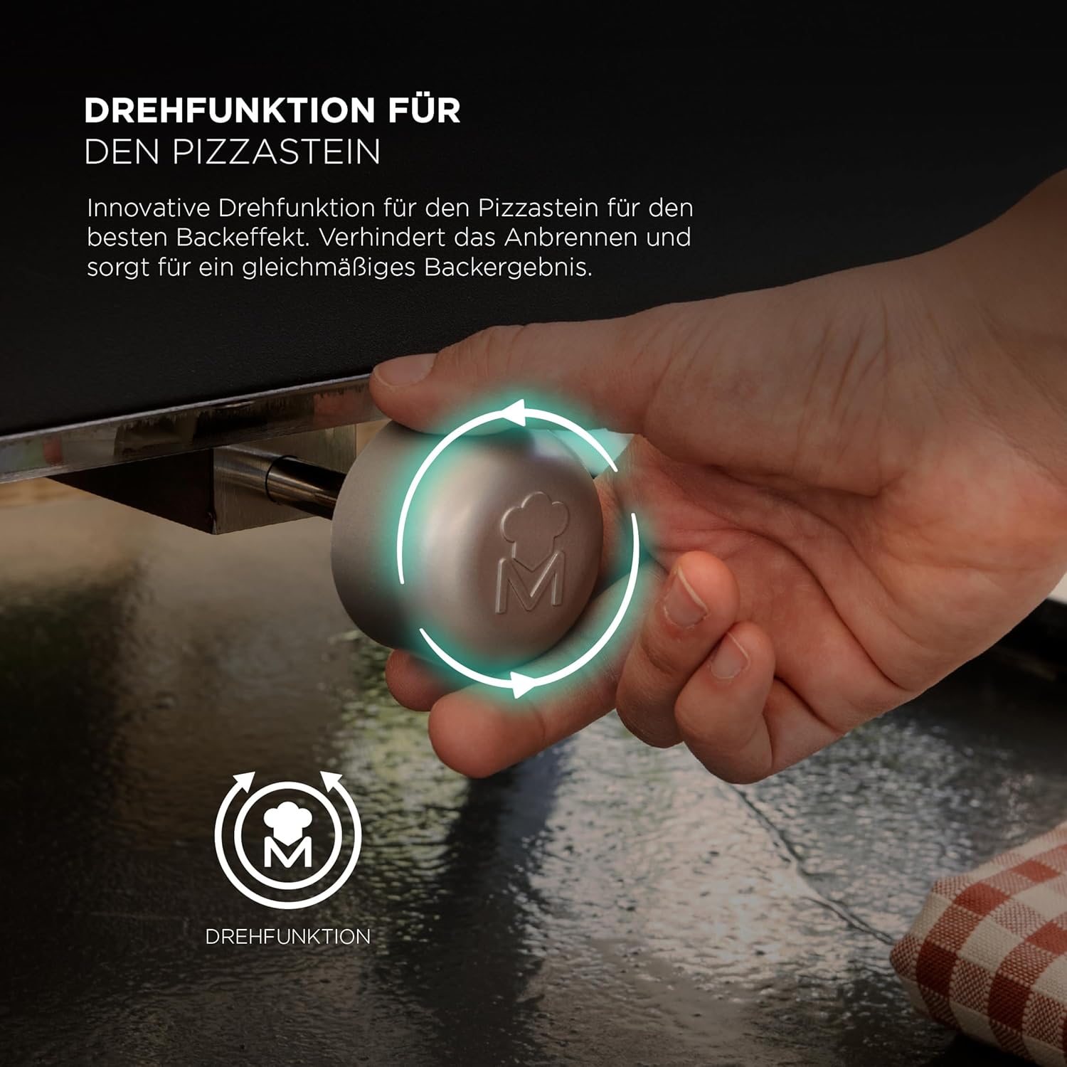 MasterPRO Napoli - Tragbarer Gas-Drehpizzaofen - Schnelles, gleichmäßiges Garen - Leistung bis zu 500°C - Pizzen in 60 Sekunden fertig - Tragetasche und Steintablett im Lieferumfang enthalten | قیمت یورویی 182.5€