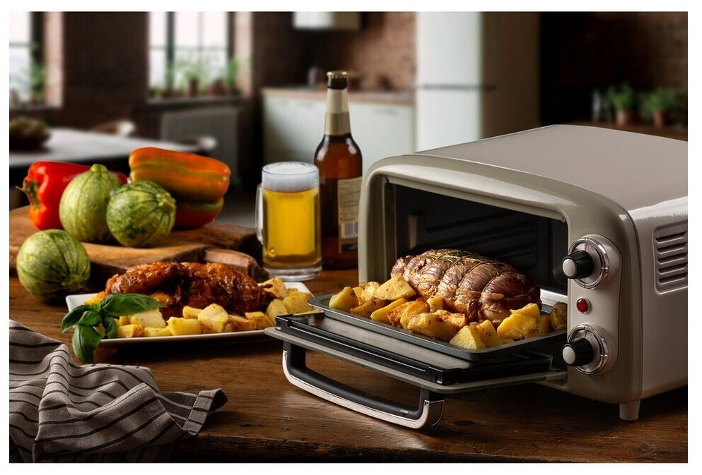 توستر آریته مدل 3919/03 با طراحی رترو و رنگ زیبا ، یک انتخاب خاص برای آشپزخانههایی با سلیقه کلاسیک و مدرن است. این مدل با ظرفیت ۱۸ لیتری، المنت بالا و پایین، تایمر تا ۶۰ دقیقه و تنظیم دما تا ۲۳۰ درجه سانتیگراد، امکان پخت، گریل و گرمکردن انواع غذاها را به شما میدهد. درب شیشهای مقاوم، چراغ داخلی، بدنه فلزی مقاوم به حرارت و طراحی جمعوجور از دیگر ویژگیهای مهم این دستگاه هستند.