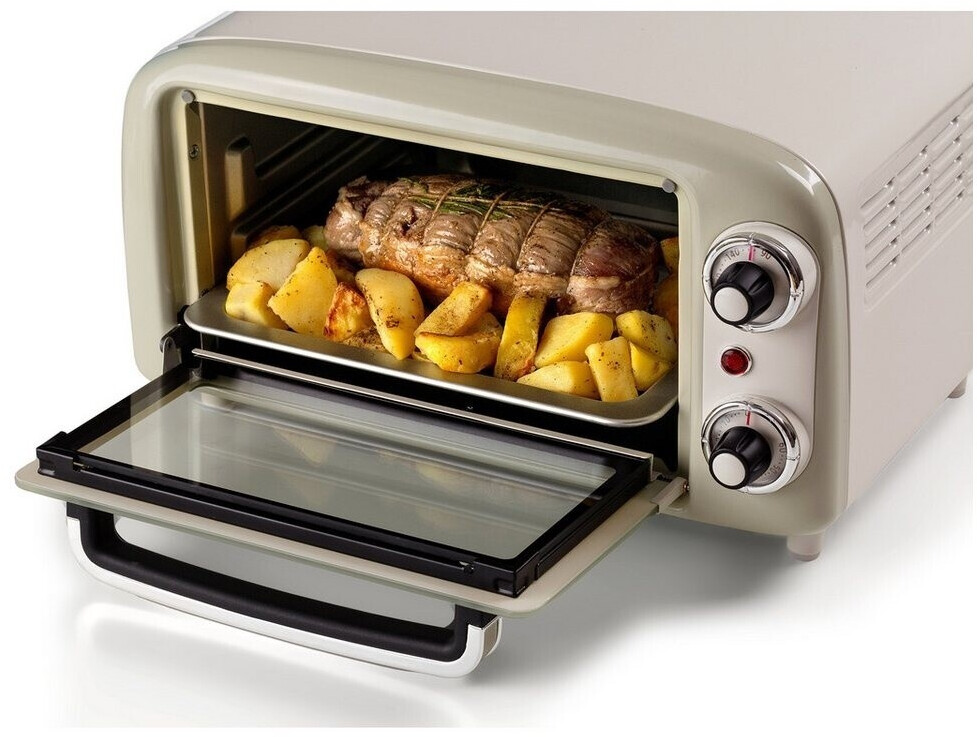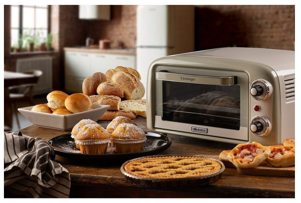 توستر برقی Ariete 3919/03 با طراحی رترو و رنگ کرم ، دارای ظرفیت ۱۸ لیتر، تایمر ۶۰ دقیقهای و المنت حرارتی بالا و پایین است. مناسب پخت، گریل و گرم کردن غذا.