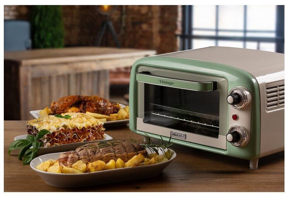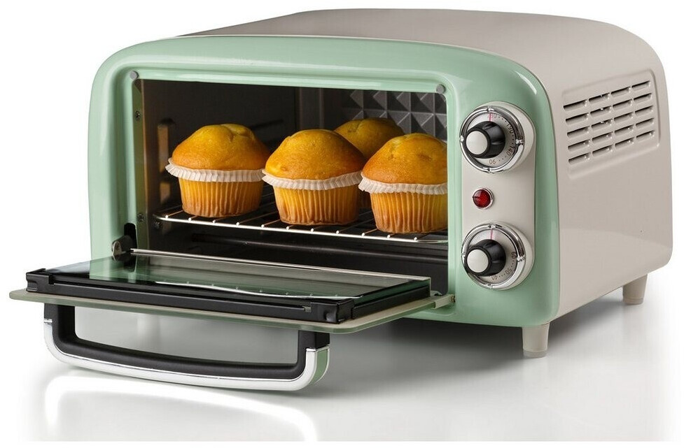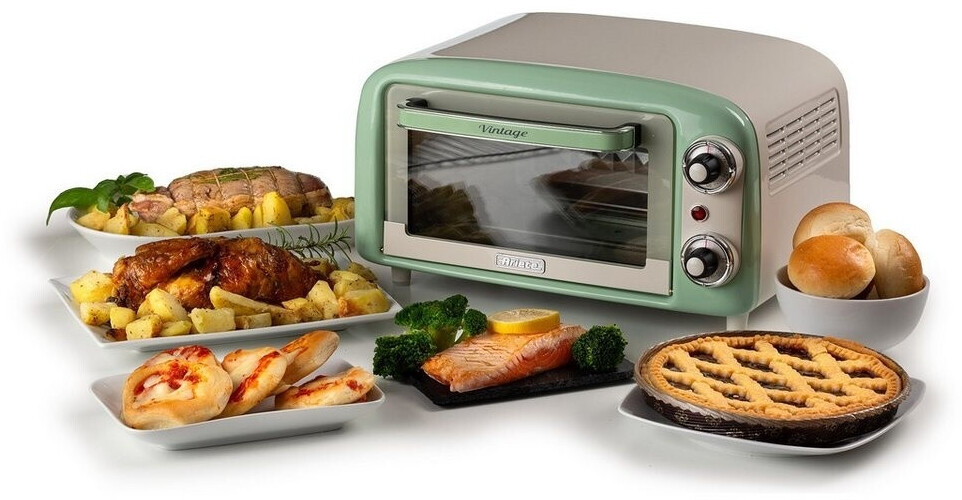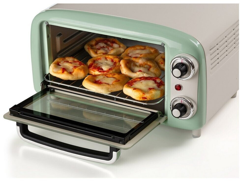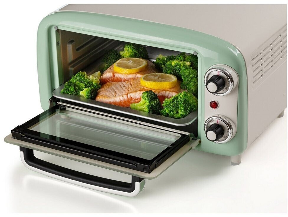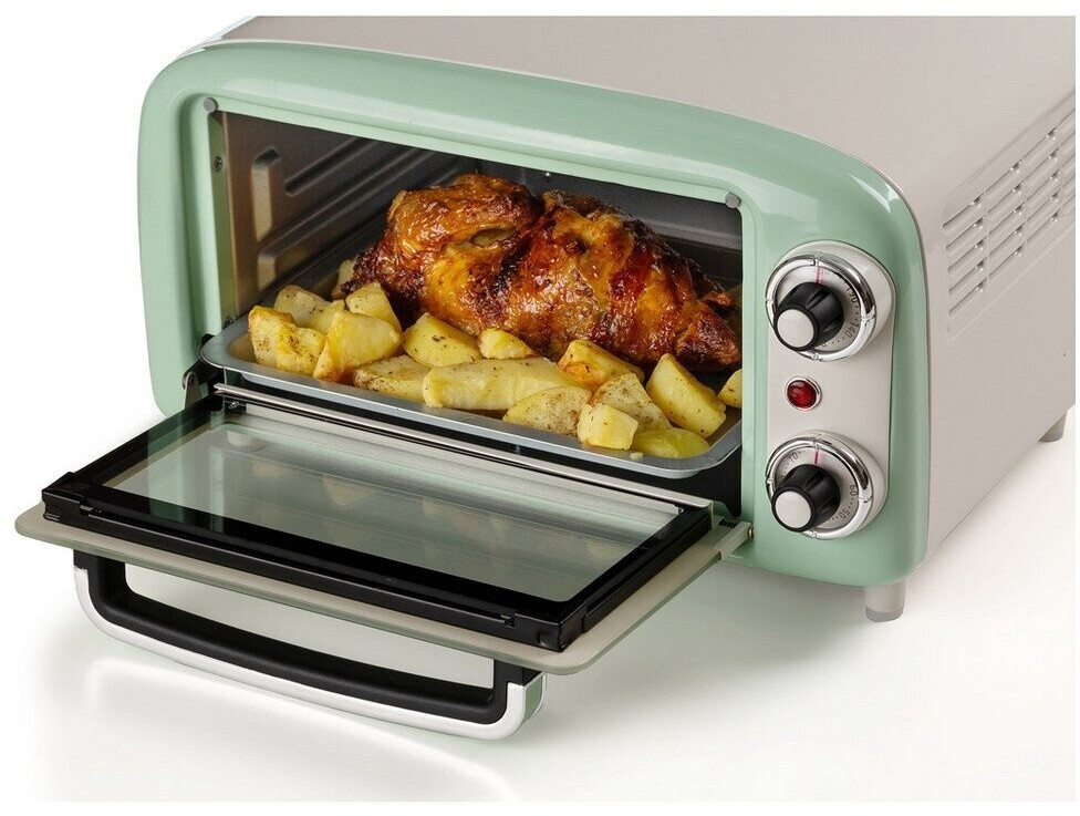 توستر برقی Ariete 3919/04 با طراحی رترو و رنگ سبز، دارای ظرفیت ۱۸ لیتر، تایمر ۶۰ دقیقهای و المنت حرارتی بالا و پایین است. مناسب پخت، گریل و گرم کردن غذا.