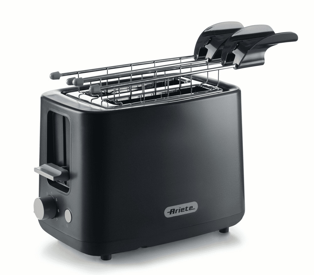 توستر آریته مدل 0157 با بدنه استیل، رنگ خاکستری تیره، انبر مخصوص نان و ۷ سطح تنظیم برشتگی، برای آمادهسازی نان داغ و ترد انتخابی مناسب است.