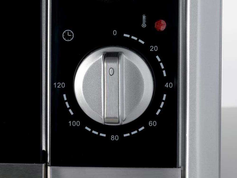 دارای تایمر ۱۲۰ دقیقهای، قابلیت تنظیم دما از ۹۰ تا ۲۳۰ درجه، پنجره شیشهای مقاوم حرارت، سینی پخت، توری گریل، سیخ جوجهگردان و چراغ داخلی برای کنترل فرآیند پخت.