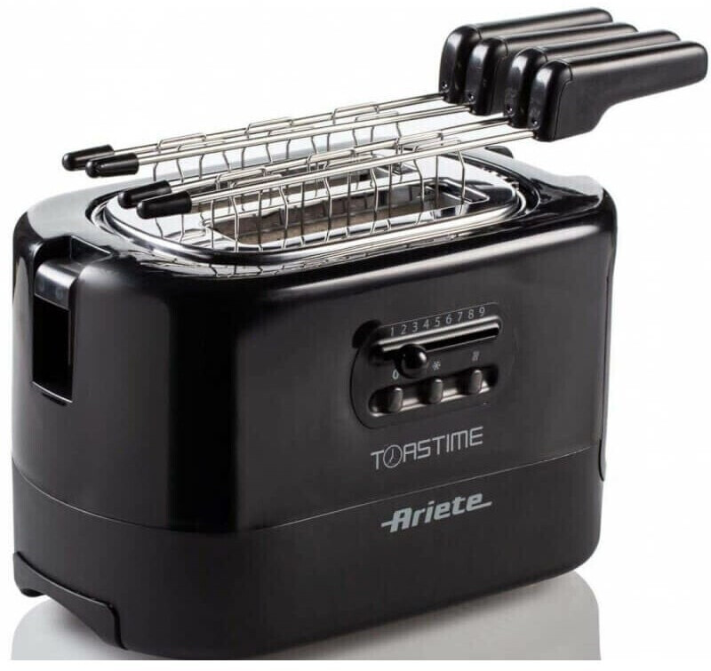 توستر آریته مدل 159 با دو شیار نان، انبر مخصوص، بدنه استیل و توان ۷۰۰ وات، برای گرم کردن، یخزدایی و برشتهکردن نان طراحی شده است.