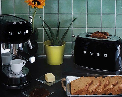 توستر دو شیار اسمگ با طراحی رترو، مناسب برای نان تست صبحانه با تنظیمات متنوع و ظاهری شیک.