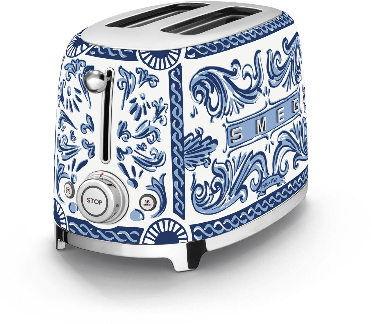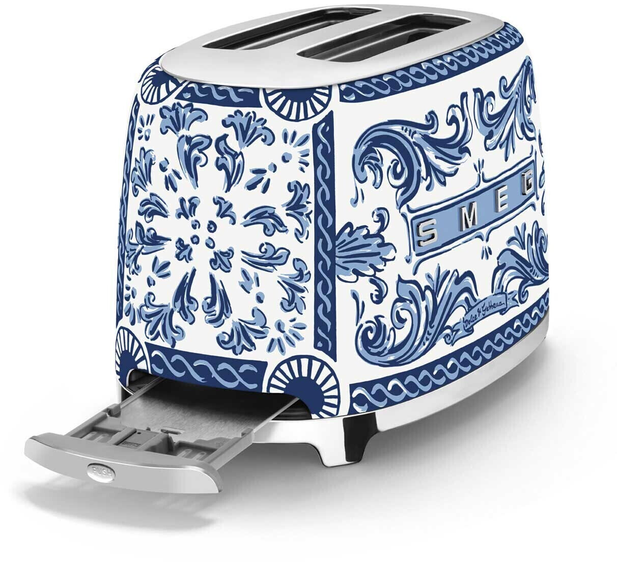 توستر اسمگ مدل TSF01DGBEU از همکاری خاص دو برند لوکس ایتالیایی، Smeg و Dolce & Gabbana متولد شده.