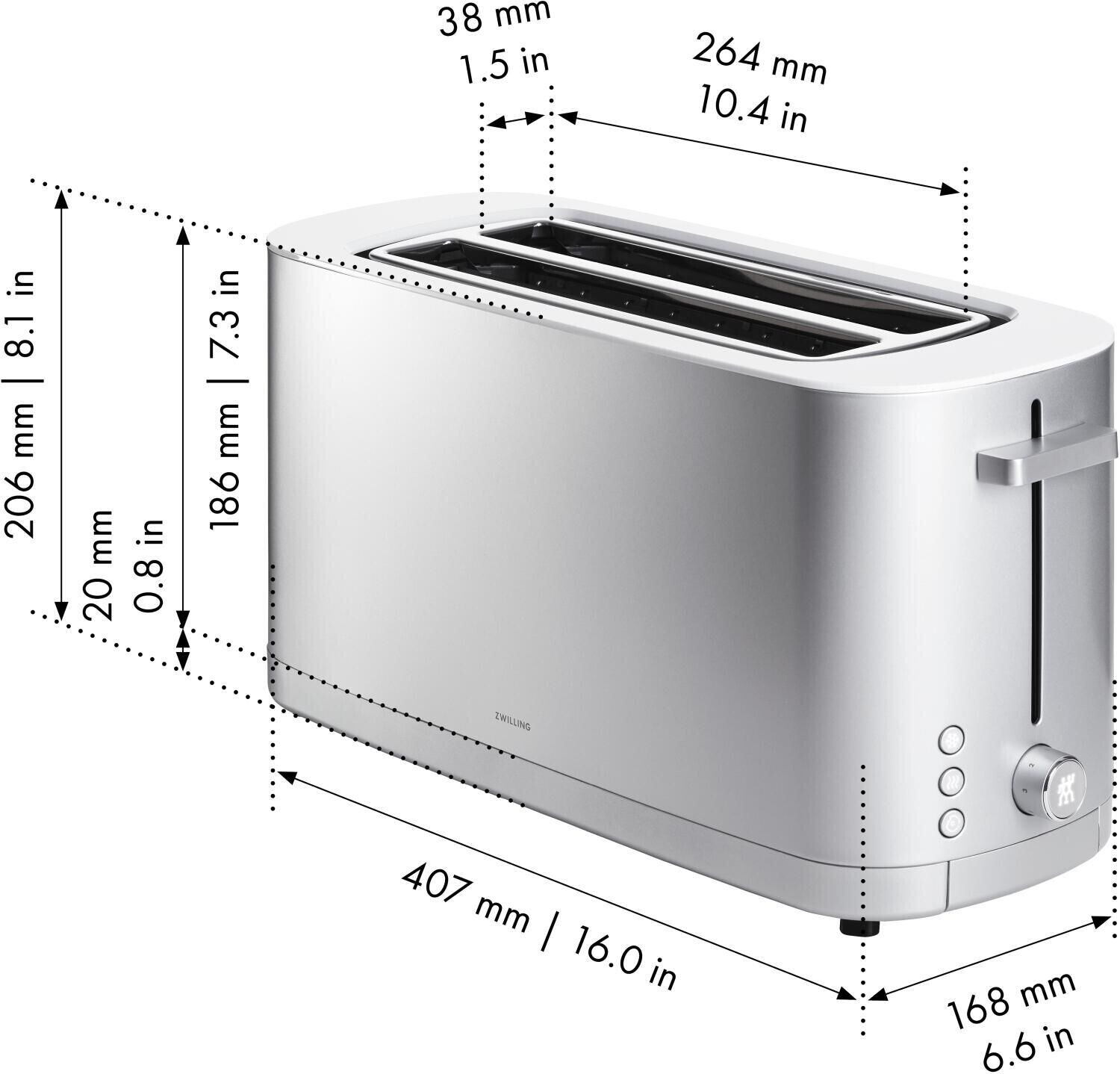ZWILLING Enfinigy Toaster mit Brötchenaufsatz, 2 Schlitze lang Silber (53009-000-0)
