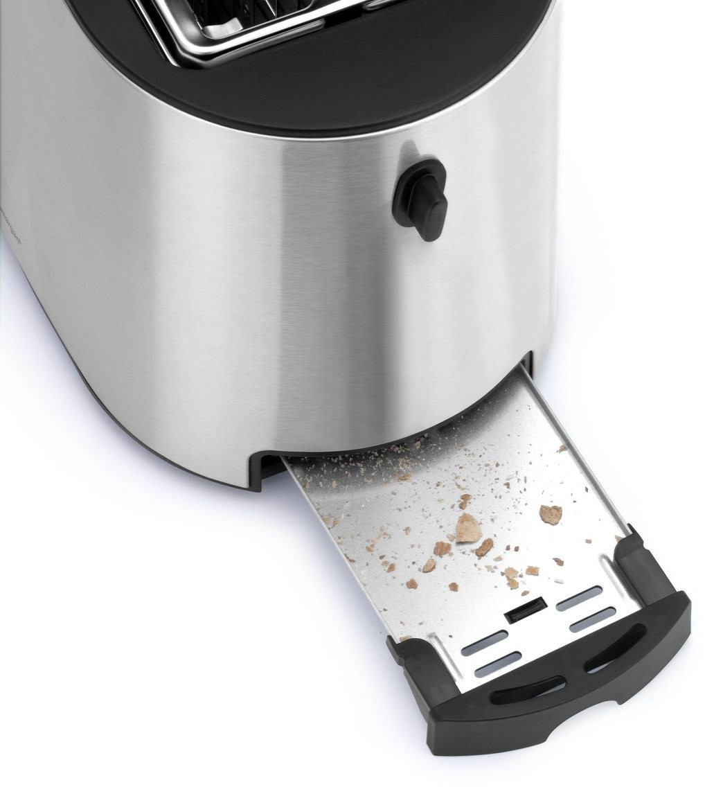 عملکردهایی نظیر Defrost (یخزدایی)، Reheat (گرمکردن مجدد) و Stop (توقف فوری) همراه با 7 درجه تنظیم برشتهسازی، کنترل کامل را در اختیار شما قرار میدهند. همچنین با سیستم مرکزگرایی خودکار نان، نان شما بهصورت یکنواخت برشته میشود. سینی خردهنان کشویی نیز تمیزکاری دستگاه را آسان میسازد.