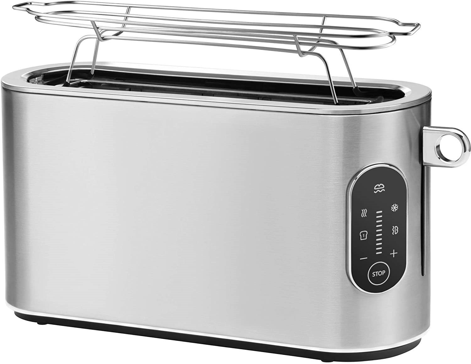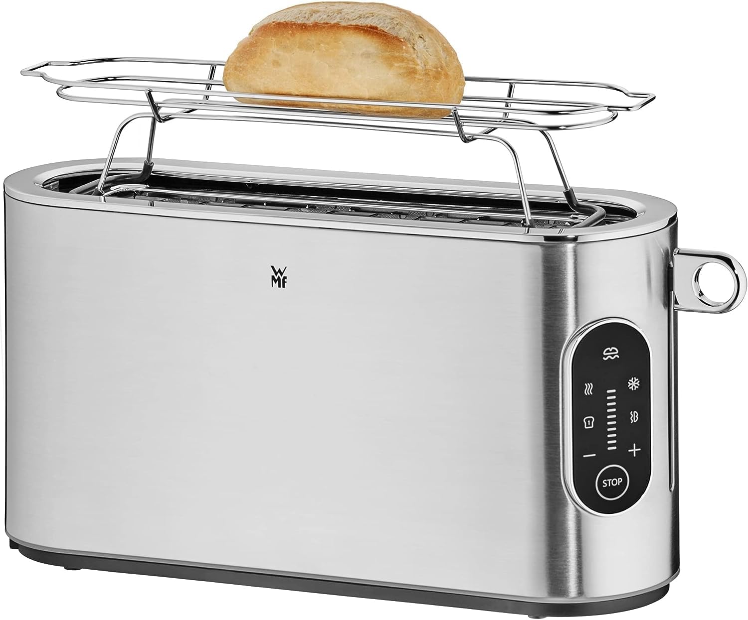 توستر WMF Lumero با بدنهای از استیل ضدزنگ Cromargan®، دو شیار بلند برای نانهای مختلف، 10 سطح تنظیم برشتهسازی، و عملکردهایی مانند یخزدایی و گرمکردن مجدد، انتخابی مناسب برای آشپزخانههای مدرن است.