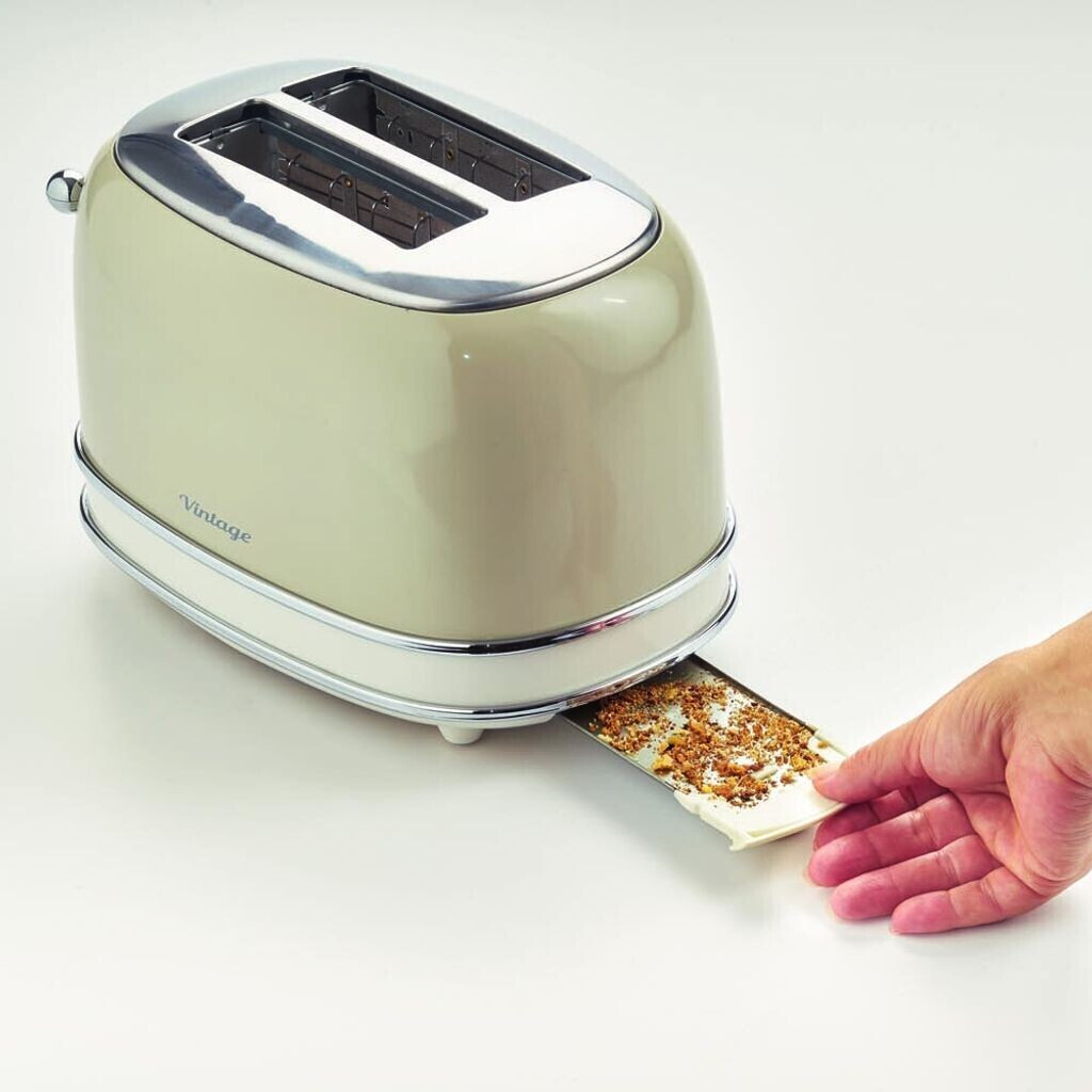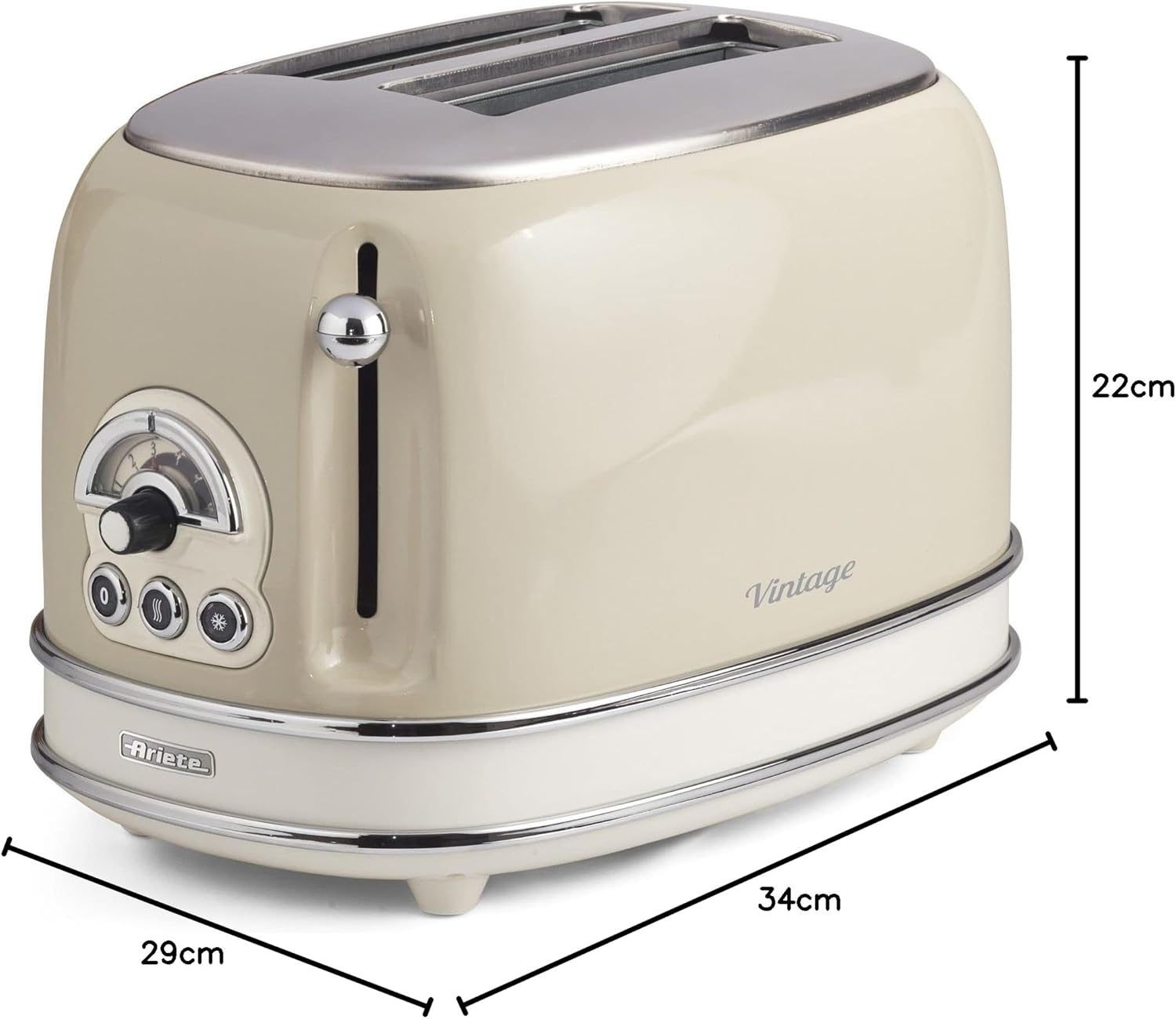 توستر نان آریته مدل Vintage 00C0155 با الهام از سبکهای کلاسیک، مجهز به دو شیار برای برشته کردن همزمان دو نان است. این دستگاه با توان 810 وات و 6 سطح تنظیم میزان برشتگی، امکان آمادهسازی انواع نان با بافت دلخواه را فراهم میکند. ویژگیهایی مانند عملکرد یخ زدایی، گرم کردن مجدد و توقف خودکار، راحتی بیشتری در استفاده فراهم کرده است. رنگ خاص این مدل، ظاهر جذاب و متفاوتی به فضای آشپزخانه میبخشد.