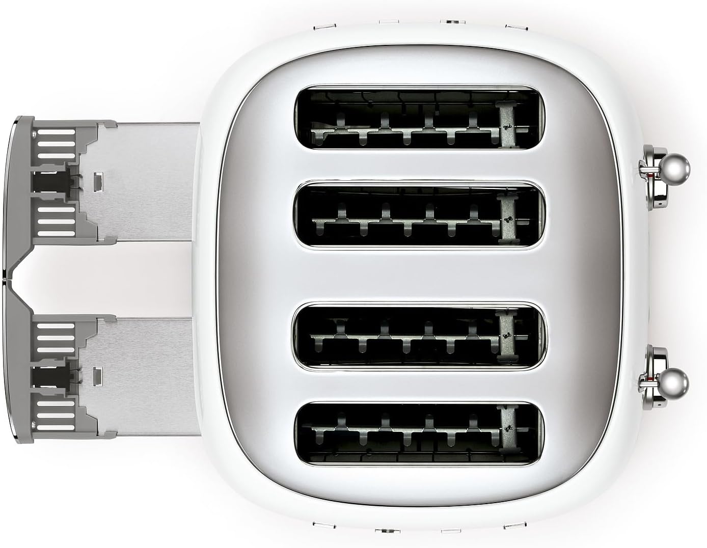 توستر SMEG TSF03 از سری دستگاههای چهار شیار برند اسمگ با طراحی خاص رترو و عملکرد حرفهای است. این مدل با ۲ ترموستات مجزا، امکان تست کردن ۲ نان متفاوت بهصورت همزمان را فراهم میسازد. بدنهی مقاوم فلزی، عملکرد یخزدایی، گرم کردن مجدد و برشتهسازی یکنواخت باعث شده این دستگاه به انتخابی بینقص برای خانوادههای پرجمعیت یا میز صبحانههای حرفهای تبدیل شود. رنگ آن نیز با اکثر دکورهای آشپزخانه هماهنگ است.