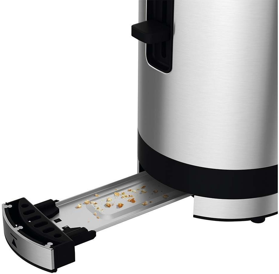 قابلیت تنظیم درجه حرارت در چند سطح، عملکرد یخزدایی و گرمکردن مجدد، سینی جمعآوری خردهنان و بدنه مقاوم از استیل ضدزنگ Cromargan® از ویژگیهای کاربردی این دستگاه هستند. توستر KÜCHENminis نهتنها فضای کمی اشغال میکند، بلکه با طراحی خاص و عملکرد یکنواخت، صبحانهای دلپذیر برایتان مهیا میکند.