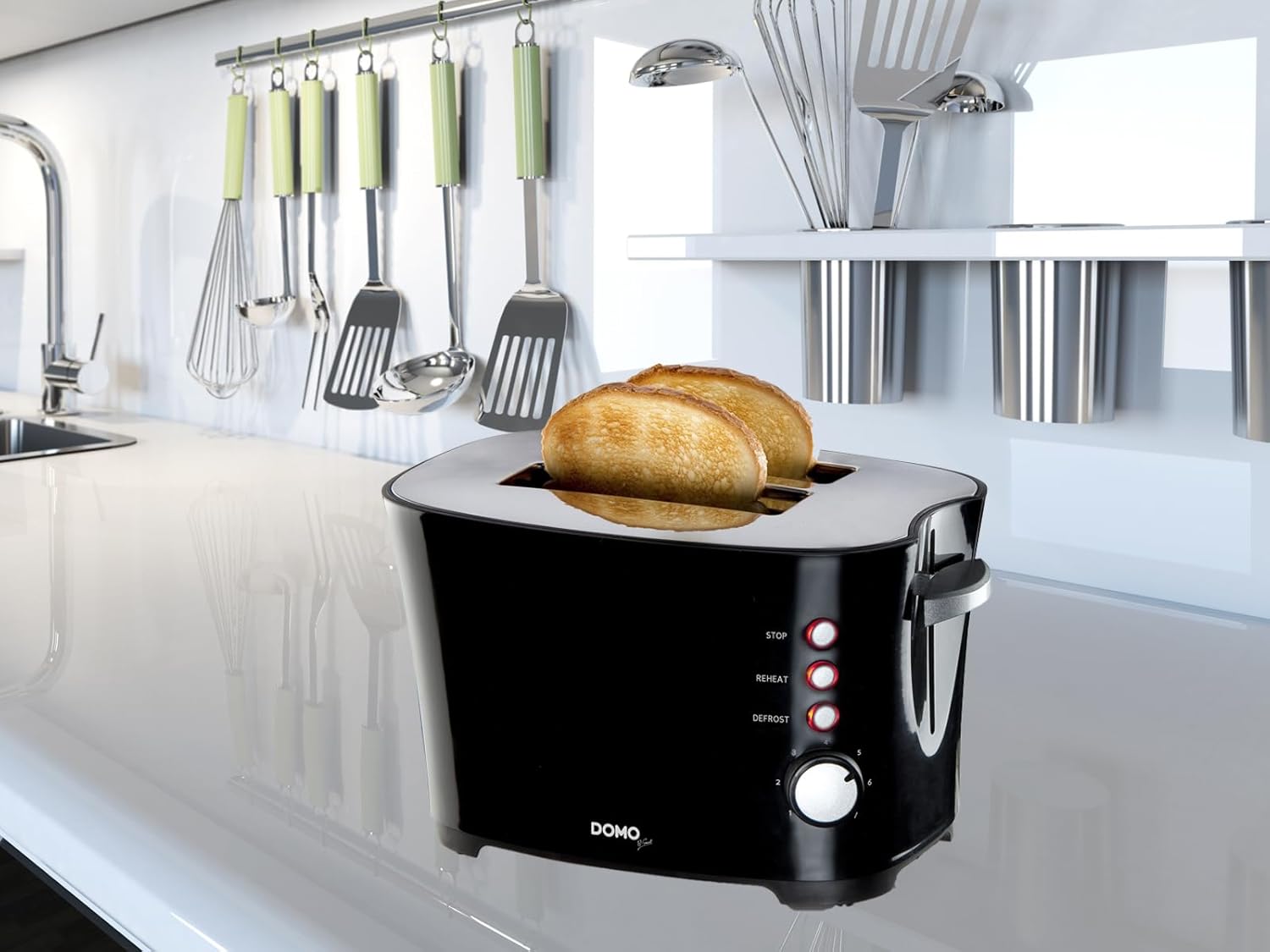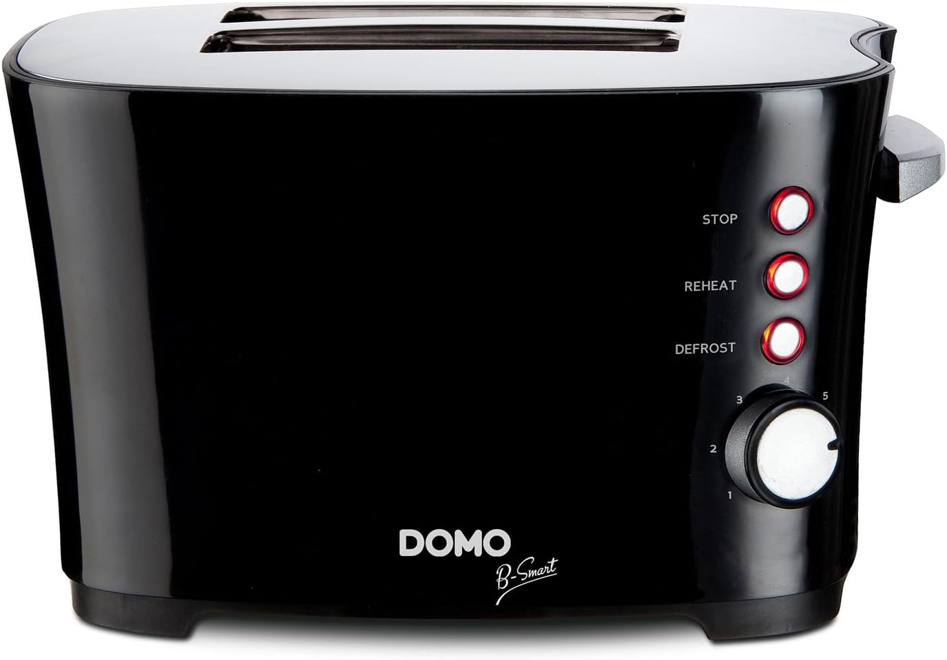 DOMO DO941T Toaster 'B-Smart' - Mit 2 Toastschlitze - 7 Temperaturstände - 3 Funktionsschalter: rösten, auftauen, abbrechen - Edelstahlabdeckung - 850W - Schwarz | قیمت یورویی 27.31€