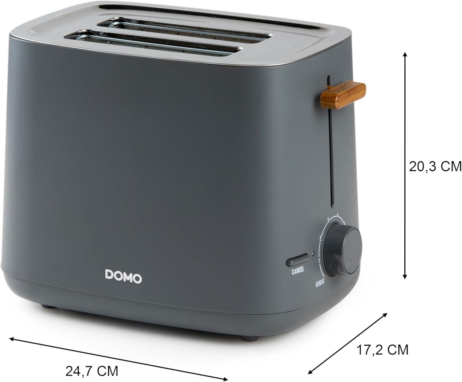 DOMO DO965T Toaster 'Wood You Serie' - 6 Temperaturstände - 3 Funktionen: rösten, auftauen, abbrechen - 2 Schlitze für 2 Toasts - Kabelaufbewahrungsfach - Matt Grau - 1000W | قیمت یورویی 31.65€