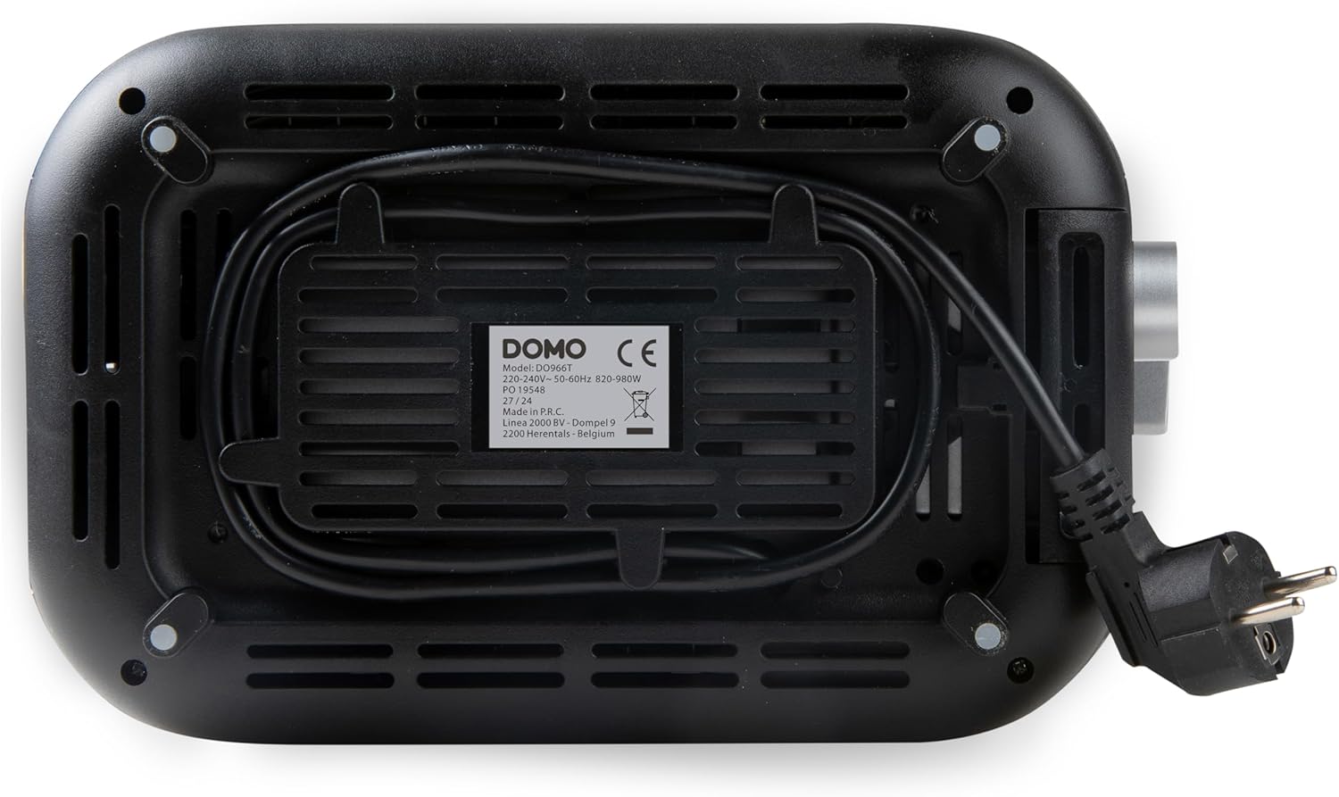 توستر DOMO DO966T - برای 2 برش نان تست - 3 عملکرد: تست، یخزدایی، لغو - 7 تنظیم دما - محفظه نگهداری سیم - 900 وات - استیل ضد زنگ
