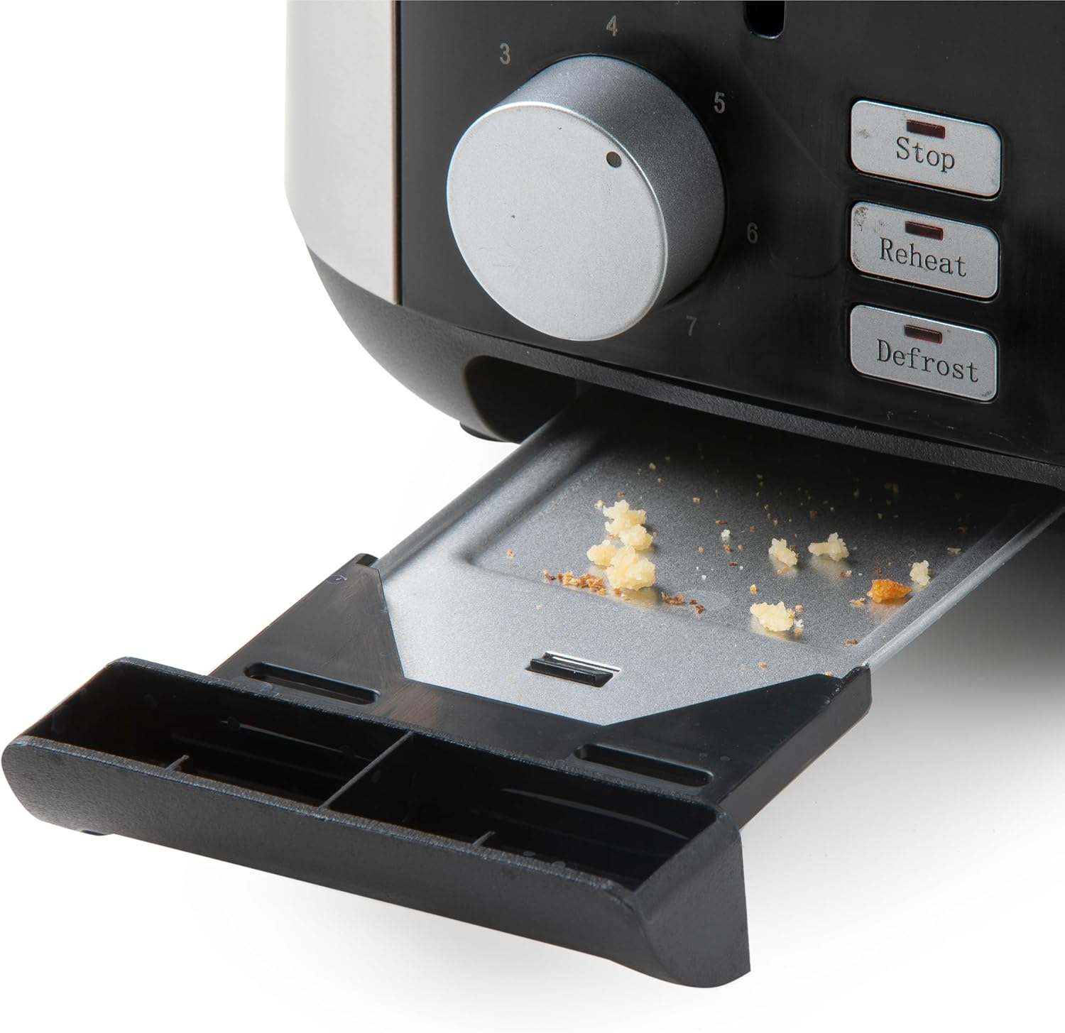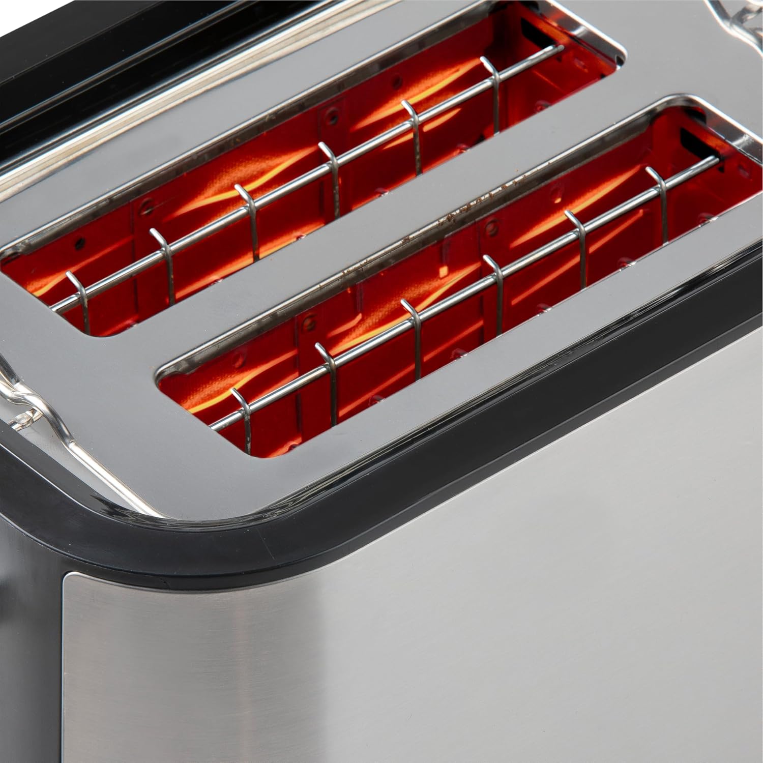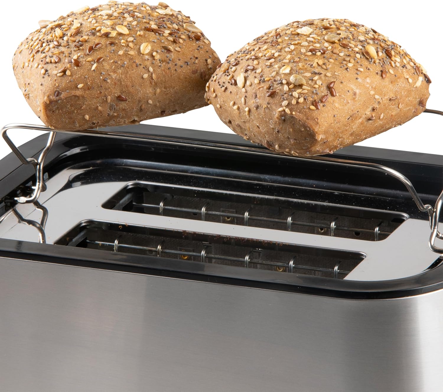 2 TOASTSCHLITZE FÜR GLEICHMÄSSIGES RÖSTEN – Dank automatischer Zentrierung werden beide Brotscheiben immer gleichmäßig getoastet für ein perfektes Ergebnis TOASTER DOMO MIT 3 FUNKTIONEN – Aufwärmen, Defrost Funktion und Abbrechen bieten dir flexible Möglichkeiten für frisches, gefrorenes oder bereits geröstetes Brot BRÄUNUNGSREGULIERUNG MIT 7 STUFEN – Stelle deinen Lieblings-Röstgrad individuell ein, ob leicht gebräunt oder knusprig – immer nach deinem Geschmack INTEGRIERTER BRÖTCHENAUFSATZ & REINIGUNG – Klappbarer Aufsatz für Croissants, herausnehmbare Krümelschublade und praktische Kabelaufwicklung MODERNES DESIGN AUS EDELSTAHL – Der Toaster DOMO DO966T vereint zeitloses Edelstahl-Design mit durchdachter Funktionalität für jede Küche | قیمت یورویی : 37.27€
