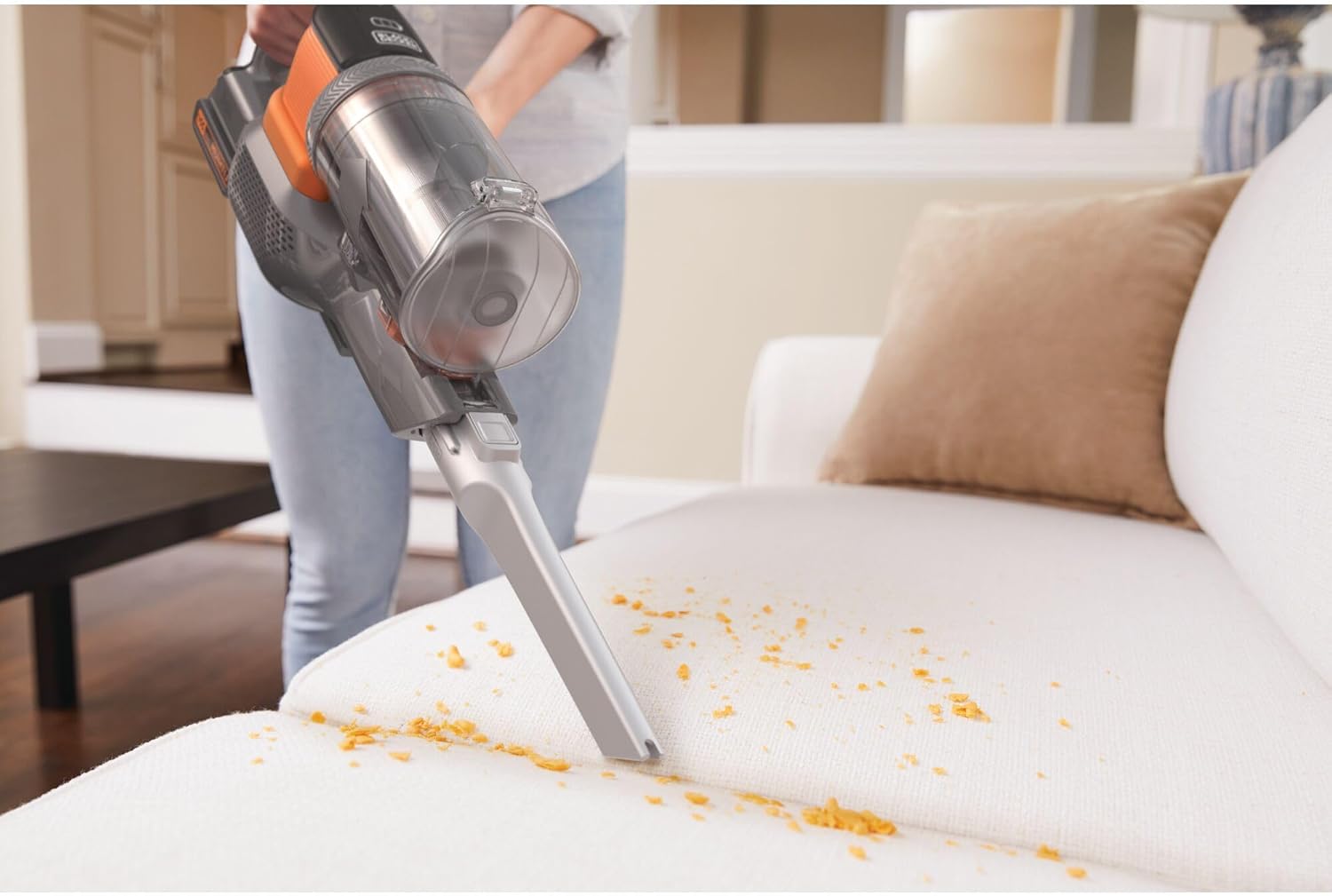 جاروبرقی بی سیم 4 در 1 BLACK+DECKER (18 ولت، 2.0Ah، کف بدون کیسه و جاروبرقی دستی با برس برقی، بی سیم، شامل ابزار شکاف، باتری، شارژر و پایه دیواری) BHFEV182C