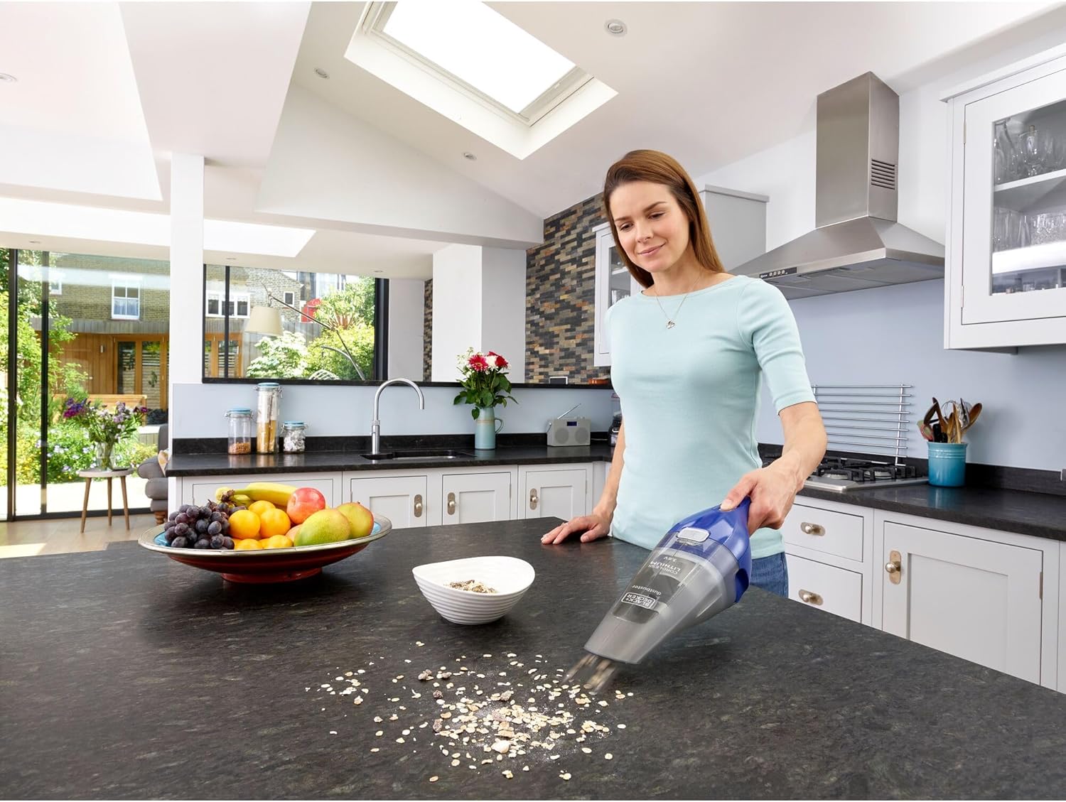 جاروبرقی دستی شارژی BLACK+DECKER Dustbuster NVC115WA (3.6 ولت لیتیوم، بدون کیسه + جارو برقی دستی، دهانه مکش گسترده، ظرف گرد و غبار قابل جابجایی، از جمله ابزار شکاف و برس اثاثه یا لوازم داخلی، ایستگاه شارژ)