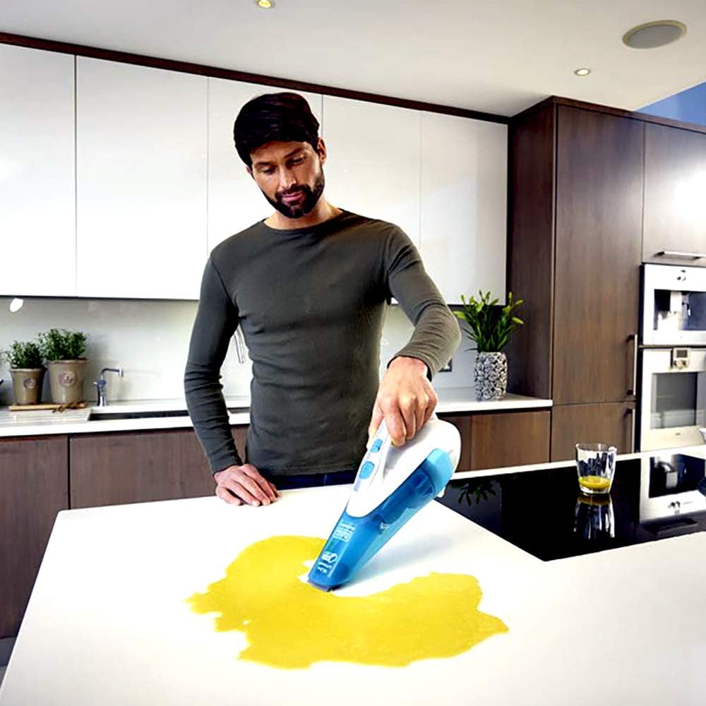VIELSEITIGE NASS- UND TROCKENREINIGUNG: Die anbringbare Gummilippe eignet sich zum Reinigen von Küchenunfällen, Badezimmerunordnung und alltäglichen Flüssigkeitsunfällen. LEISTUNGSSTARKE LITHIUM-TECHNOLOGIE: Der 16,2Wh (10,8V/1,5Ah) Lithium-Ionen-Akku liefert eine anhaltende Leistung ohne Leistungsverlust und sorgt für eine gleichbleibende Saugkraft bis zur letzten Minute der Nutzung. BREITE SAUGDÜSE: Nimmt effektiv große Schmutzpartikel wie Lebensmittel und Müsli in einer einzigen Bewegung auf, was eine effiziente Reinigung verschiedenster Verschmutzungen ermöglicht. ZWEI SAUGSTUFEN: Wählen Sie zwischen zwei Saugstufen, um den Anforderungen verschiedener Reinigungsaufgaben gerecht zu werden und eine effektive Reinigung für alle Arten von Verschmutzungen zu gewährleisten. LED-LADEANZEIGE: Die LED-Anzeige blinkt beim Laden und leuchtet auf, wenn sie vollständig geladen ist, und gibt so ein klares Feedback zum Batteriestatus. LEICHT ZU PFLEGEN: Der Staubbehälter lässt sich mit einem einzigen Knopfdruck leicht entfernen und sowohl der Filter als auch der Staubbehälter sind waschbar für eine bequeme Reinigung. KOMPAKT UND LEICHT: Das Design gewährleistet eine einfache Handhabung und Manövrierfähigkeit, was es für schnelle und komfortable Reinigungen geeignet macht. ERREICHT JEDEN WINKEL: Sein Design ermöglicht es Ihnen, enge Ecken und schwer erreichbare Bereiche zu erreichen, was die Reinigung an schwierigen Stellen vereinfacht. HEPA-FILTER: Ausgestattet mit einem HEPA-Filter zur effektiven Staubentfernung, der eine sauberere Luftqualität gewährleistet, während Sie reinigen. INHALT: Ein Ladekabel, Wandhalterung und aufsteckbare Gummilippe für Nasssaugen, bereit für verschiedene Reinigungsaufgaben. | قیمت یورویی : 67.9€