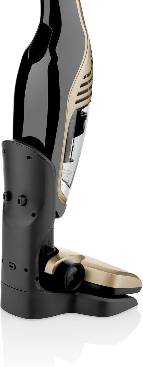 جاروبرقی دستی و بیسیم ETA مدل Moneto I دوکاره، باتری لیتیوم-یونی ۲۵.۲ ولت، فیلتر HEPA، برس برقی چرخان، حجم ۰.۵۵ لیتر، رنگ طلایی/مشکی