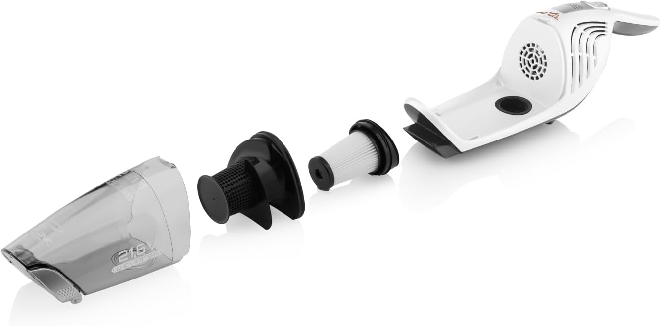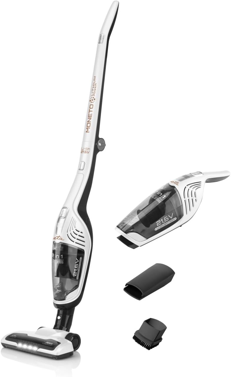 جاروبرقی دستی و بیسیم ETA مدل Moneto II I، دو در یک، باتری لیتیوم-یونی ۲۱.۶ ولت، فیلتر HEPA، برس برقی چرخان، سیستم فیلتر سیکلون، رنگ سفید