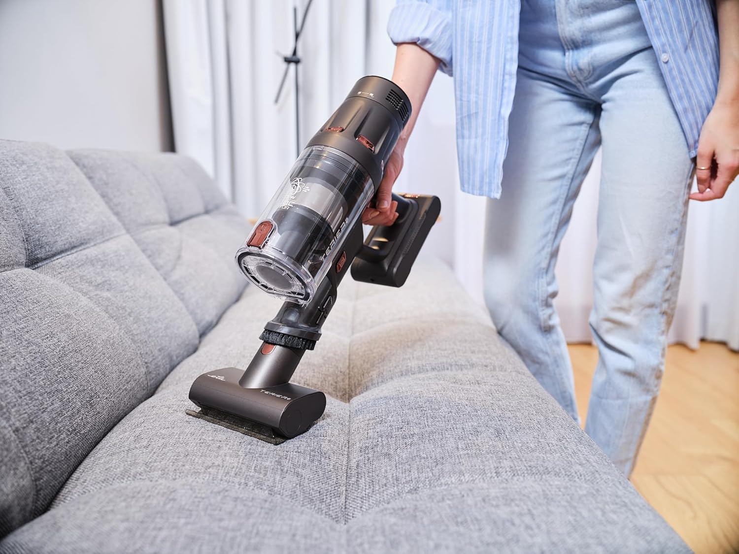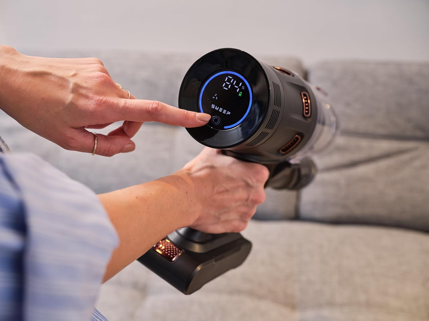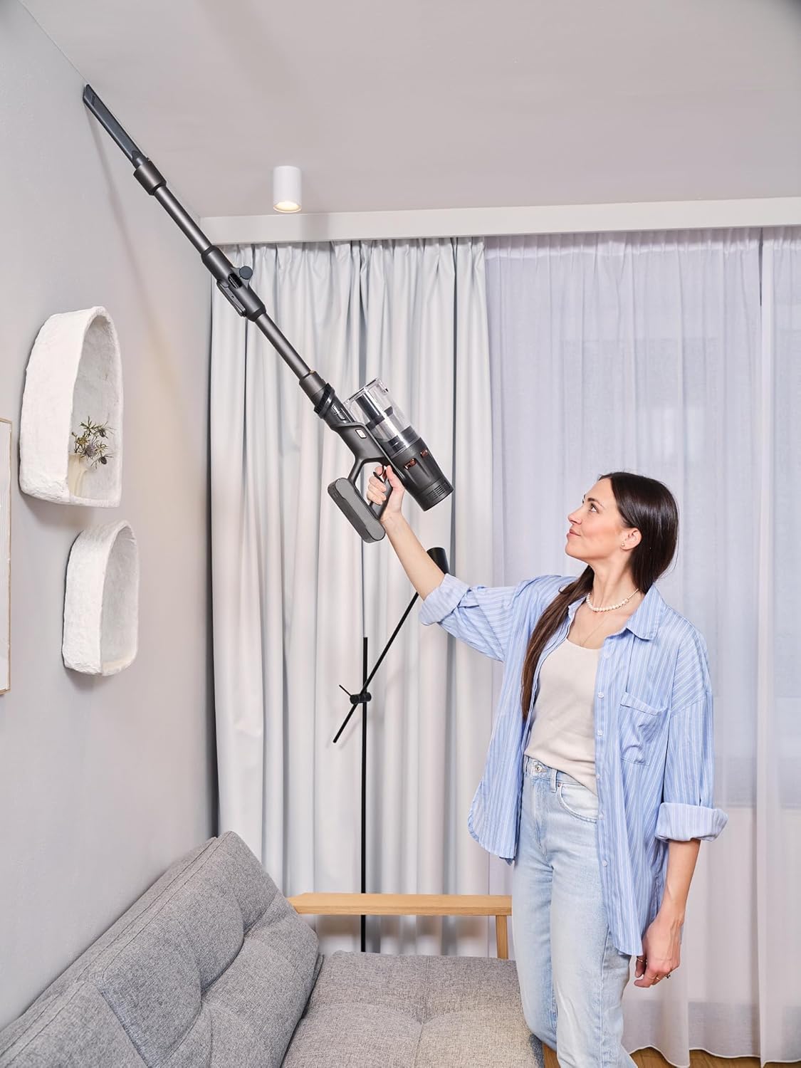 جاروبرقی عصایی ۳ در ۱ با موتور دیجیتال قدرتمند ۵۰۰ وات. این جاروبرقی عصایی، عملکرد سه کاره را ارائه میدهد و به یک موتور دیجیتال ۵۰۰ واتی مجهز شده است که قدرت مکش فوقالعادهای را تضمین میکند. به لطف فناوری حسگر هوشمند گرد و غبار، جاروبرقی به طور خودکار قدرت مکش را با توجه به میزان کثیفی تنظیم میکند تا همیشه در بهترین حالت خود باشد. فناوری حذف مو و خز. نازل مخصوص کف با طراحی ویژه، عملکردی دارد که از جمع شدن مو و کرک حیوانات خانگی در حین جاروبرقی کشیدن جلوگیری میکند. این تضمین میکند که نازل همیشه کارآمد باقی میماند و کمتر نیاز به تمیز کردن دارد. باتری فوق العاده قوی و قابل تعویض برای مدت زمان طولانی کار. با باتری لیتیوم-یونی قابل تعویض و فوقالعاده قدرتمند، این جاروبرقی میتواند با یک بار شارژ تا ۸۰ دقیقه کار کند. این به شما امکان میدهد بدون نیاز به شارژ مداوم، خانه خود را کاملاً تمیز کنید. لوازم جانبی متنوع برای آرایش حیوانات خانگی. این دستگاه با لوازم جانبی مفید متنوعی از جمله لوازم جانبی مخصوص آرایش حیوانات خانگی عرضه میشود. این موارد شامل یک برس مخصوص زیرپوش، یک برس گره باز کن و یک برس مخصوص تجدید آرایش برای رفع نیازهای حیوانات خانگی شما میشود. صفحه نمایش لمسی OLED و انعطافپذیری. این جاروبرقی عصایی دارای یک صفحه نمایش لمسی OLED مدرن است که وضعیت قدرت مکش فعلی و میزان باتری را به درصد نمایش میدهد. علاوه بر این، مکانیزم مفصل انعطافپذیر امکان دسترسی تا ۶۰ سانتیمتر را فراهم میکند، بنابراین میتوانید به راحتی حتی مناطق صعبالعبور را نیز تمیز کنید.