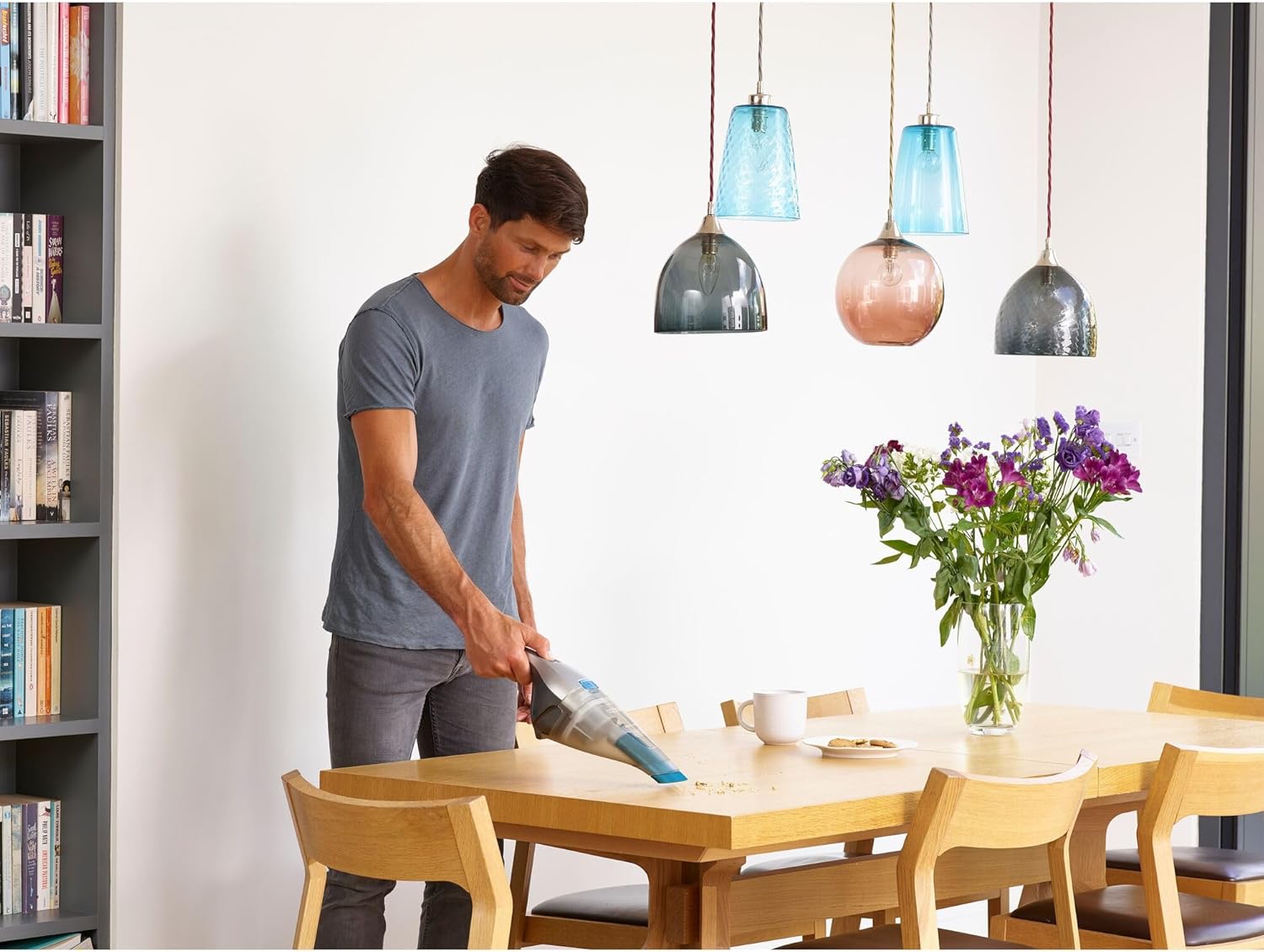 Für den Alltag: Der kabellose Handstaubsauger mit breiter Saugnase saugt mühelos gröberen Schmutz wie Tierfutter oder Müsli auf und ist somit der Helfer für tägliche Reinigungsarbeiten Zuverlässig im Haushalt: Der Sauger ist leicht und kompakt und kann bequem durch das Haus getragen werden, mithilfe der aufsteckbaren Aufsätze lassen sich auch Polster und Fugen einfach absaugen Leistungsstark und einfach zu handhaben: Der Handsauger begeistert mit konstanter Leistung dank Lithium-Technologie sowie mit ergonomischem Design und ohne Kabel durch eine bequeme Anwendung Hygienisch und praktisch: Der spülmaschinenfeste Schmutzfangbehälter lässt sich leicht entfernen und kann entleert werden, ohne mit Schmutz in Kontakt zu kommen, wasch- und austauschbarer Filter Maximale Flexibilität: Der kabellose und beutellose Betrieb bietet maximale Flexibilität und Komfort bei der Reinigung, keine lästigen Kabel oder teuren Beutel mehr | قیمت یورویی : 51.55€