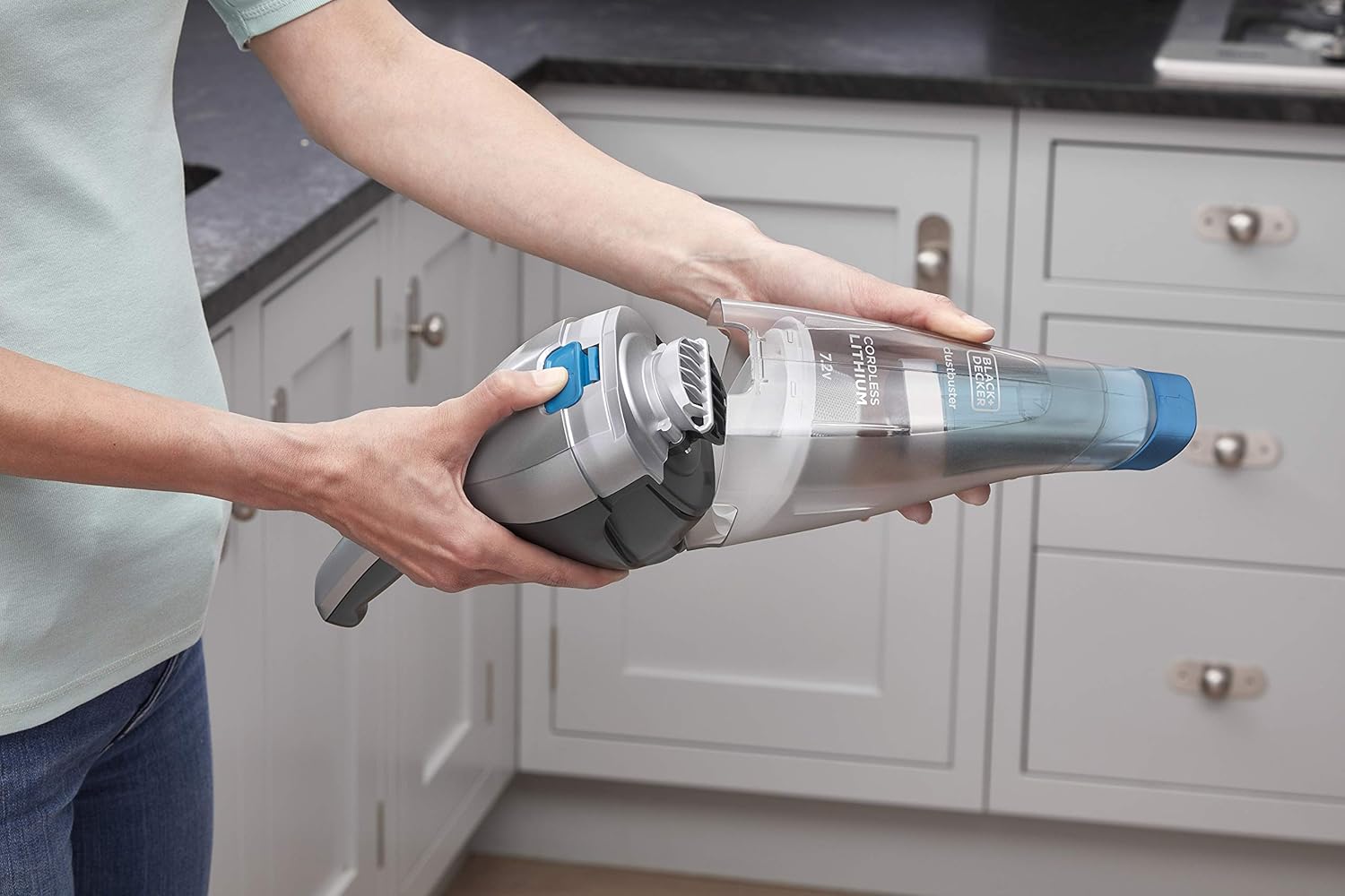 BLACK+DECKER Handstaubsauger Akku Dustbuster (beutellos - 7,2V Kabelloser + beutelloser Staubsauger mit Fugendüse, Polsterbürste und Ladestation mit Wandhalterung NVC215WA, Kobaldblau, 385 ml | قیمت یورویی 51.55€