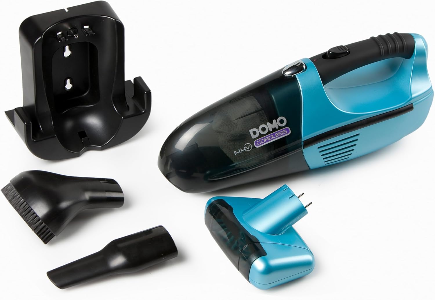 DOMO DO211S Handstaubsauger mit motorisierter XL Rollbürste, kabelloser Staubsauger für Tierhaare, Fussel oder Krümel 14.4 V blau | قیمت یورویی 65.99€