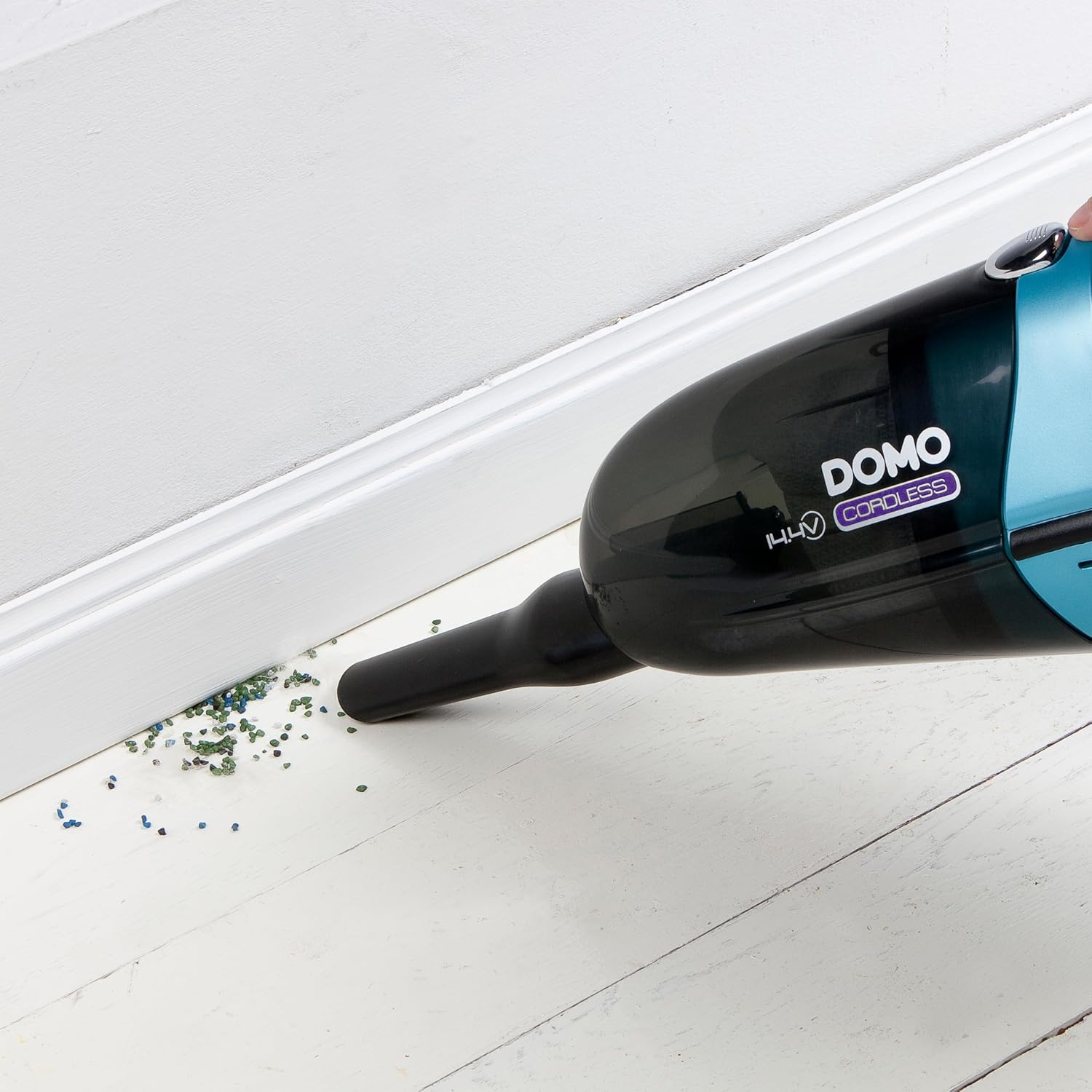 جاروبرقی دستی DOMO DO211S با برس غلتکی موتوری XL، جاروبرقی بیسیم برای موی حیوانات خانگی، کرک یا خرده نان، 14.4 ولت آبی