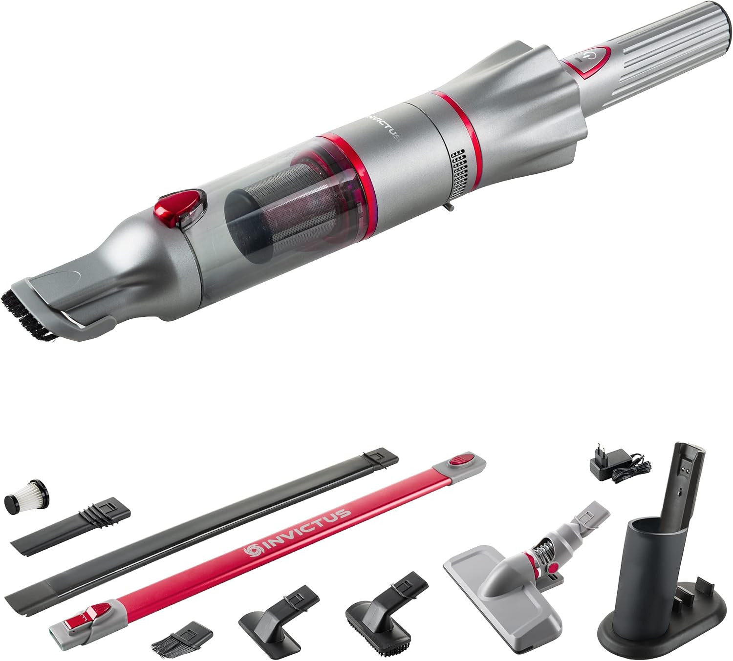 Genius A82124, Invictus One 2.0 Handstaubsauger + Bodenstaubsauger 15-TLG rot-Handsauger beutellos & kabellos mit 13000PA | 2X HEPA Filter, Lithium Ionen Akku, Zusatz Bürsten-Set, 90 W, 76 Dezibel | قیمت یورویی 159.94€